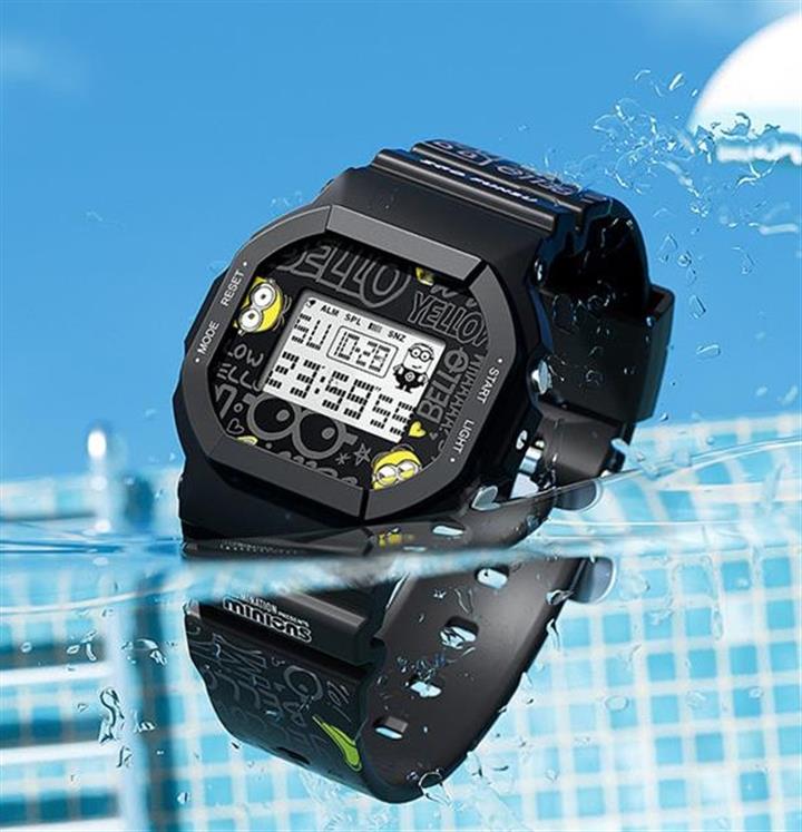 小黃人夜光防水卡通簡約方塊電子表wat1957