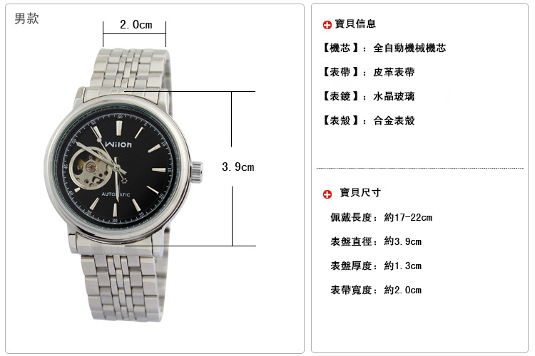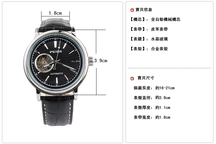 全自動機械多功能橡膠帶大號錶 wat1850
