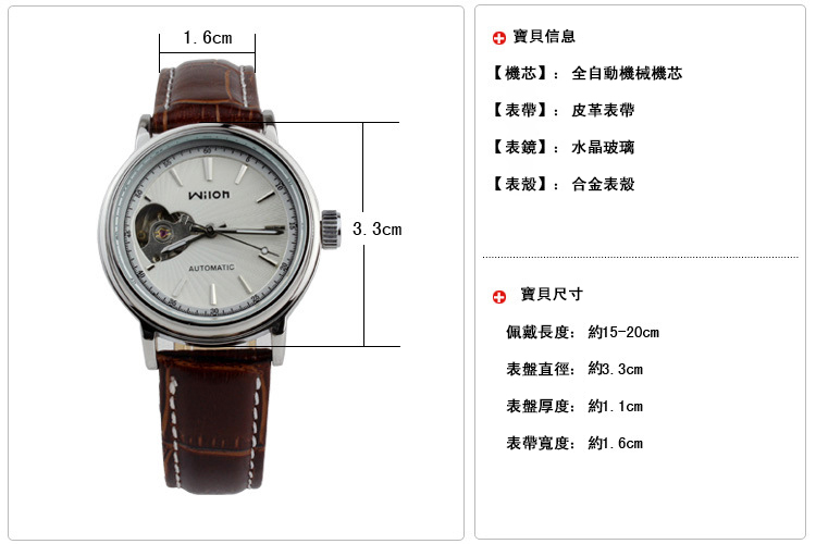 酒桶形镂空自動皮帶防水夜光 Wat1846