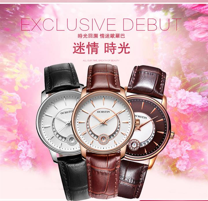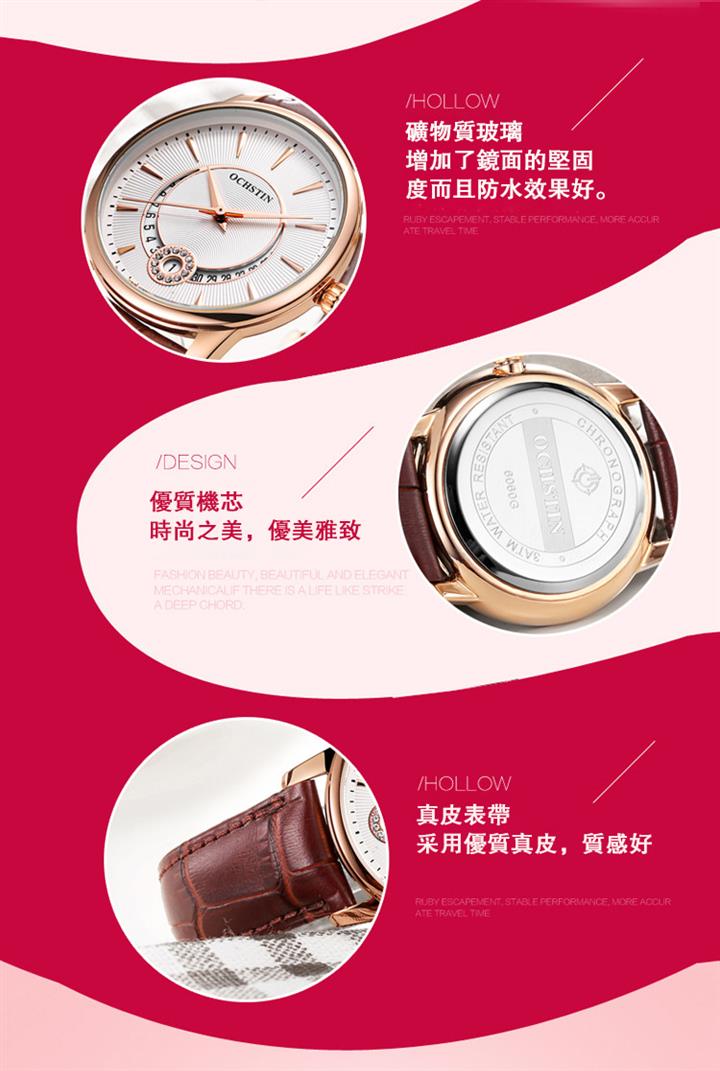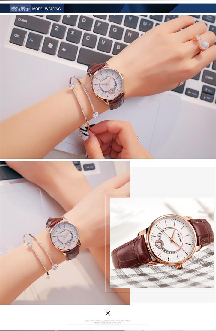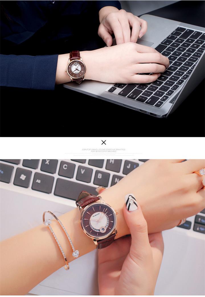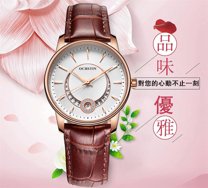 新款 女士時來運轉腕表玫瑰金 雕花殼 皮錶帶 時尚女手錶Wat50