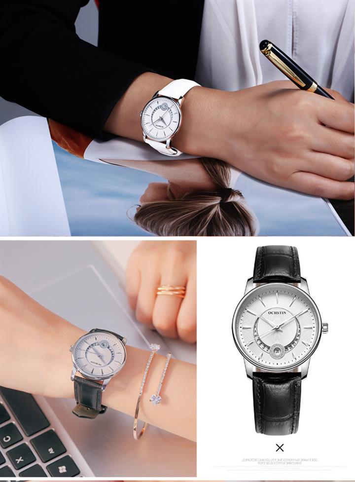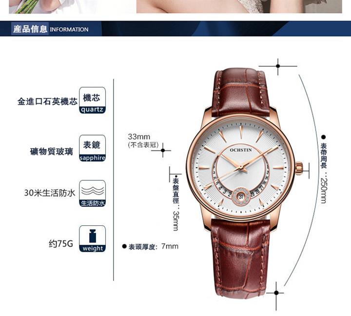 優雅時尚貝殼面真皮錶帶實心鋼錶Wat43