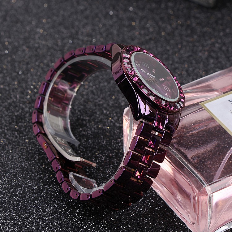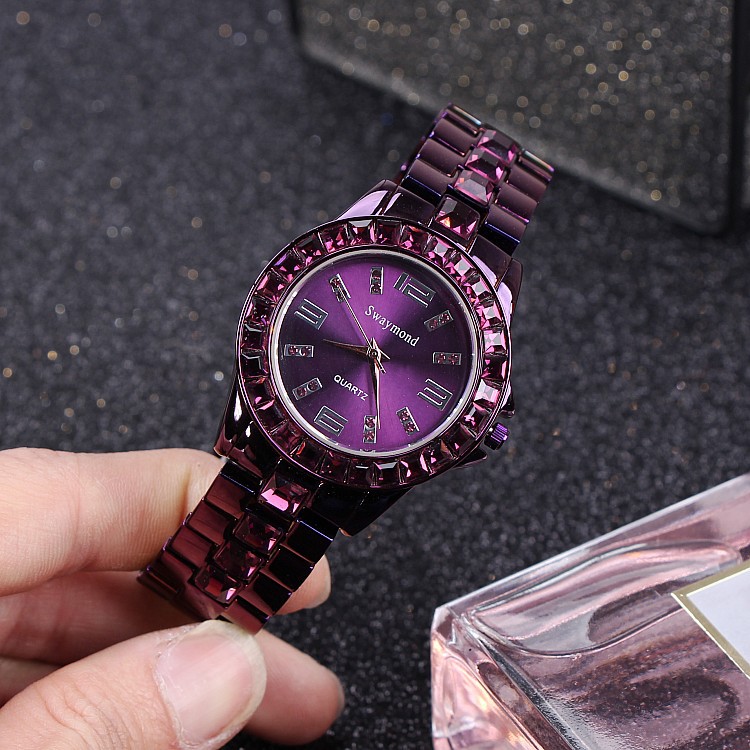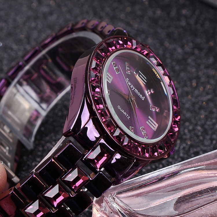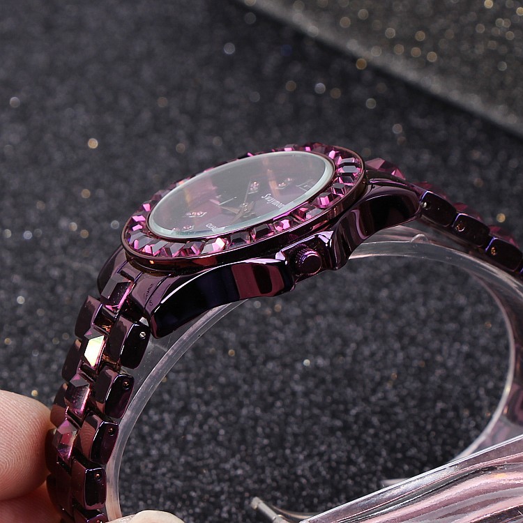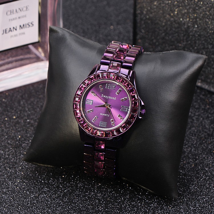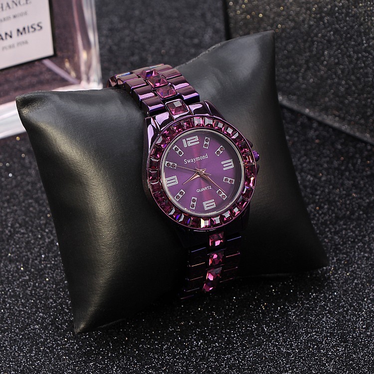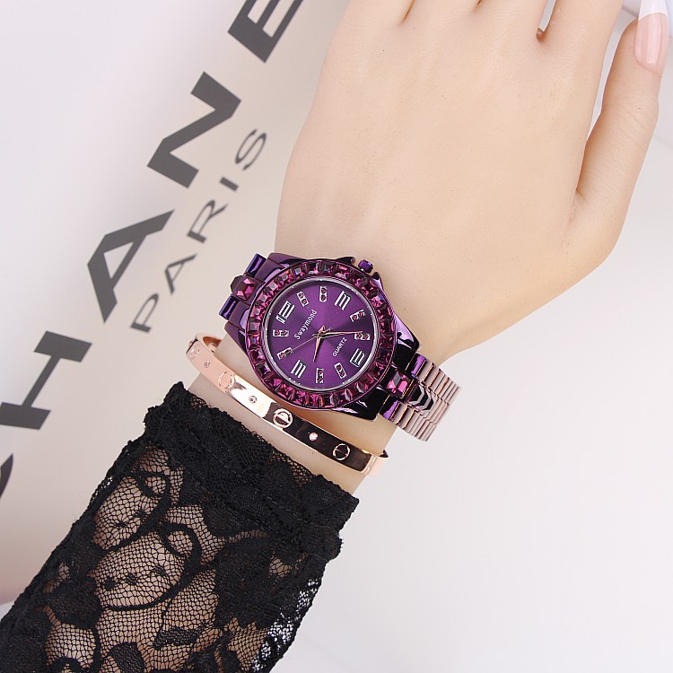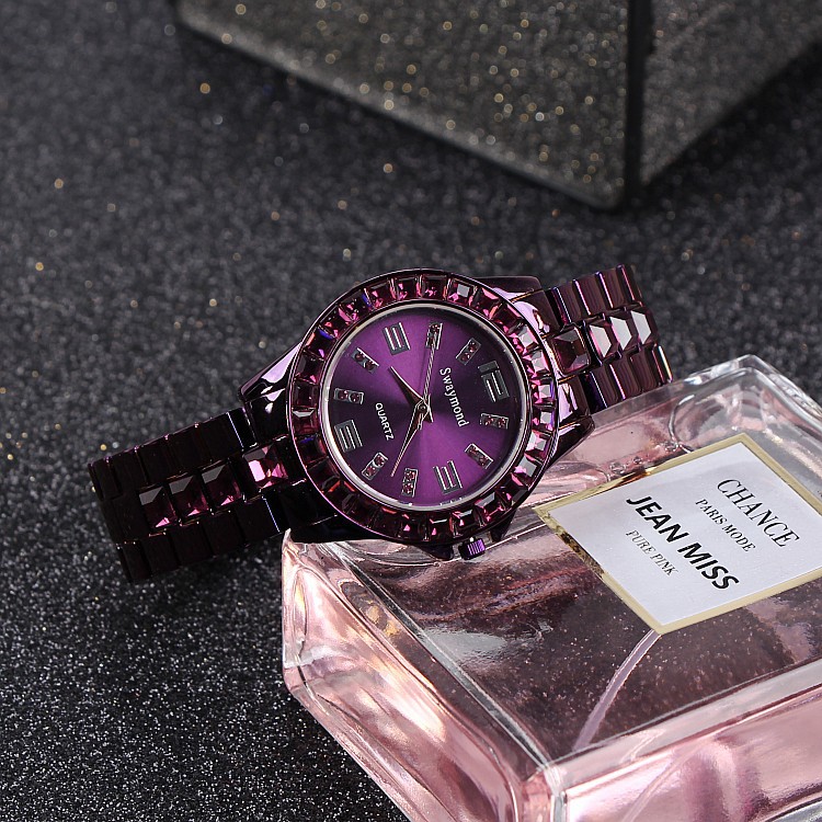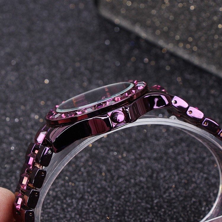 新款 紫色鑲鑽個性耐用不銹鋼錶帶 時尚女士手錶Wat48