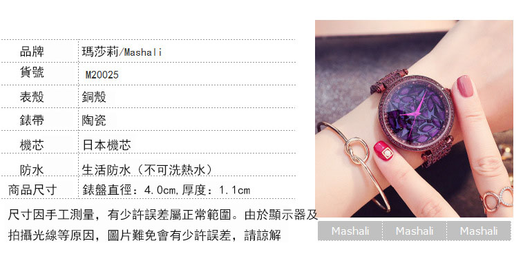 貝母鑲鑽女士手表皮帶石英表女wat123