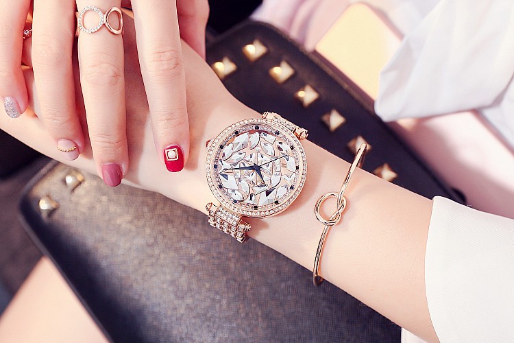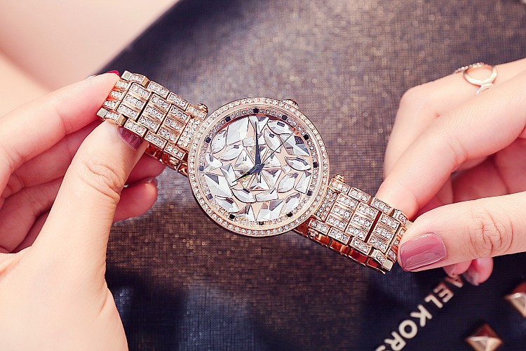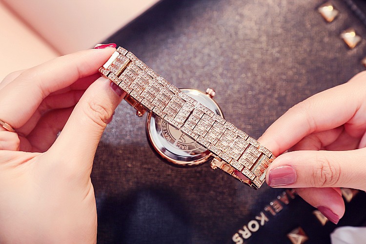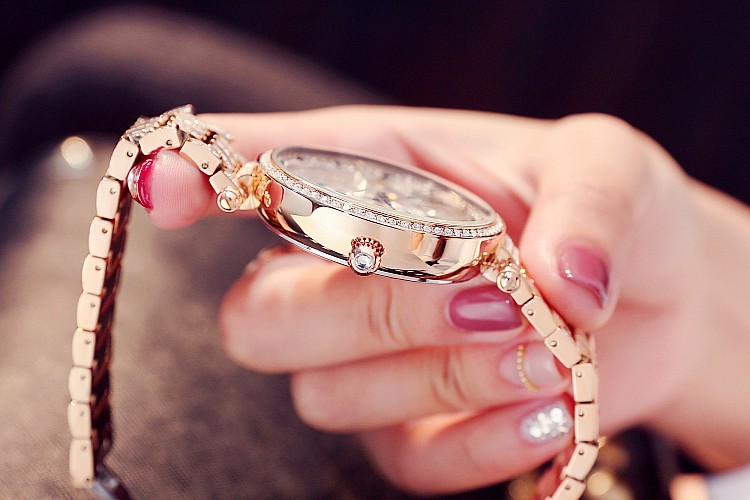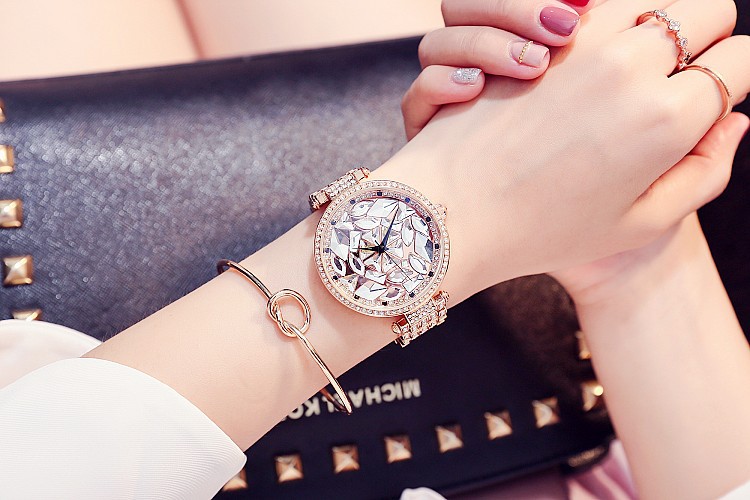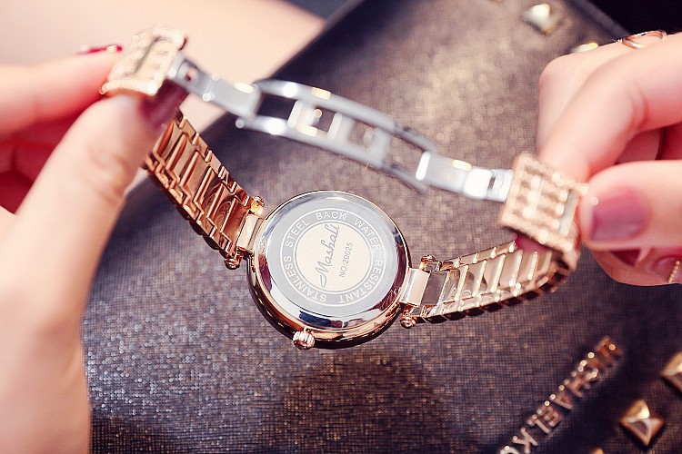 個性鑲鑽石英休閒時尚鋼帶女錶wat121