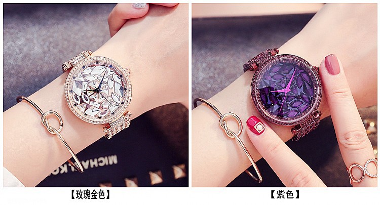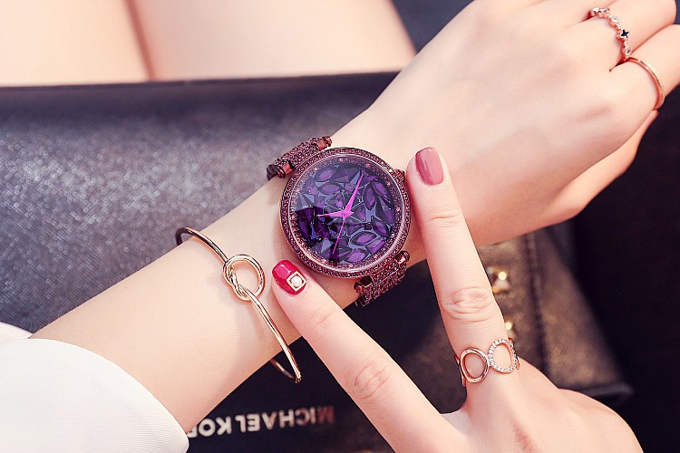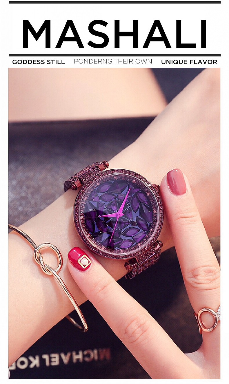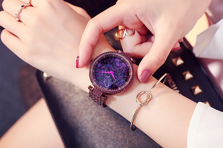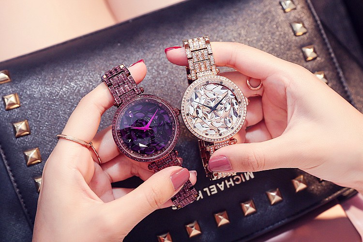 爆款 鑲鑽 耐用水晶滿鑽 時尚個性紫色鋼帶 女士手錶Wat59