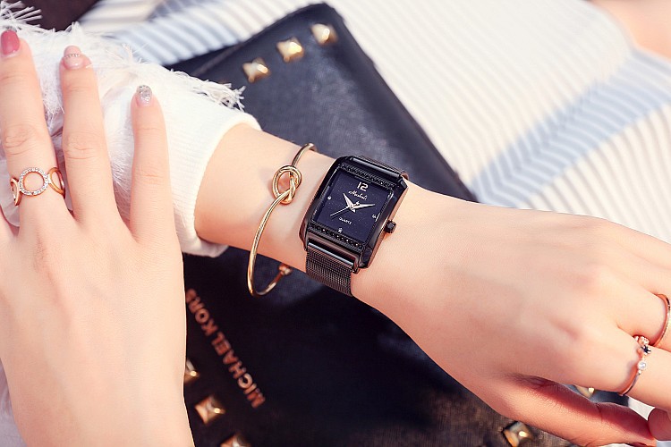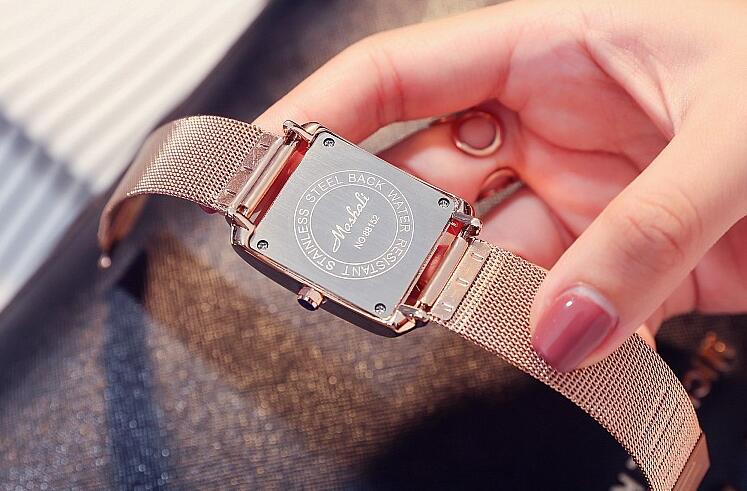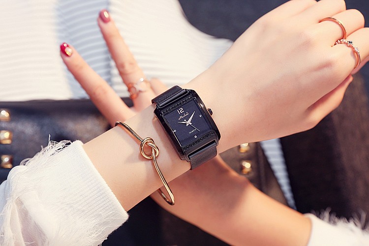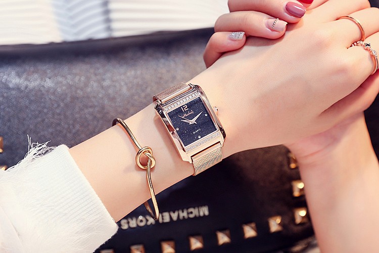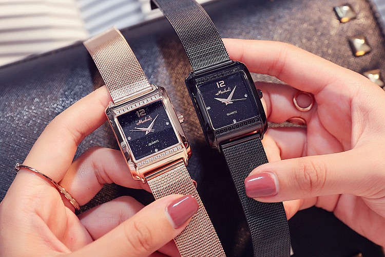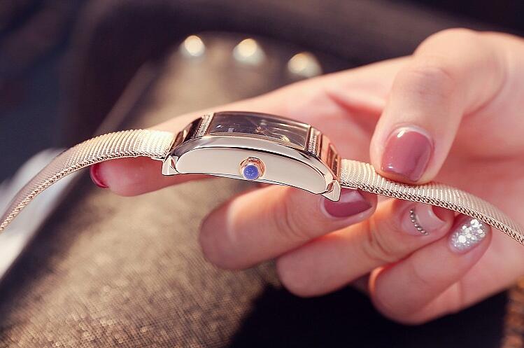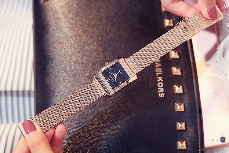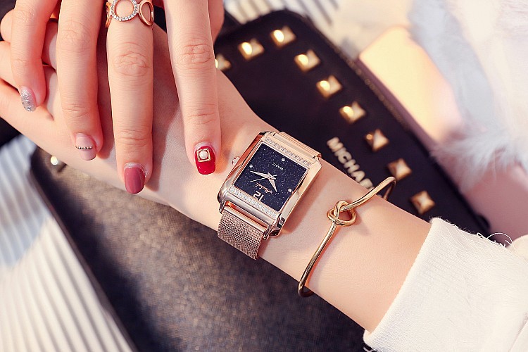 新款爆款 不銹鋼網帶星空方形優雅大氣 時尚個性女士手錶Wat61