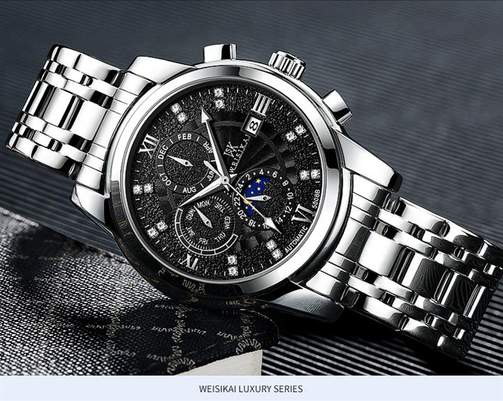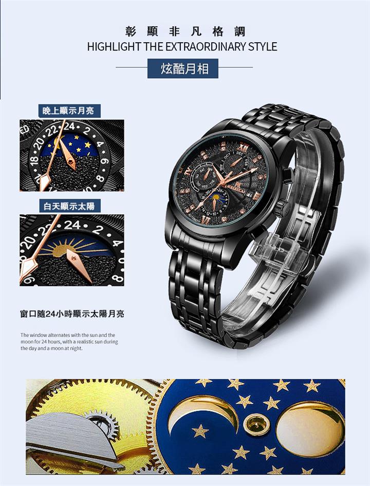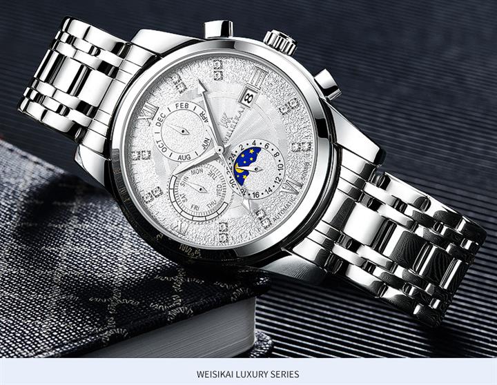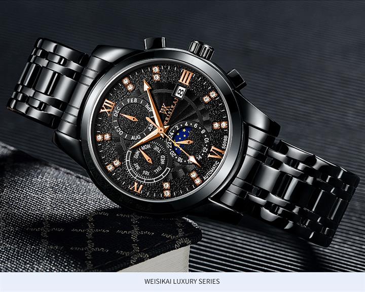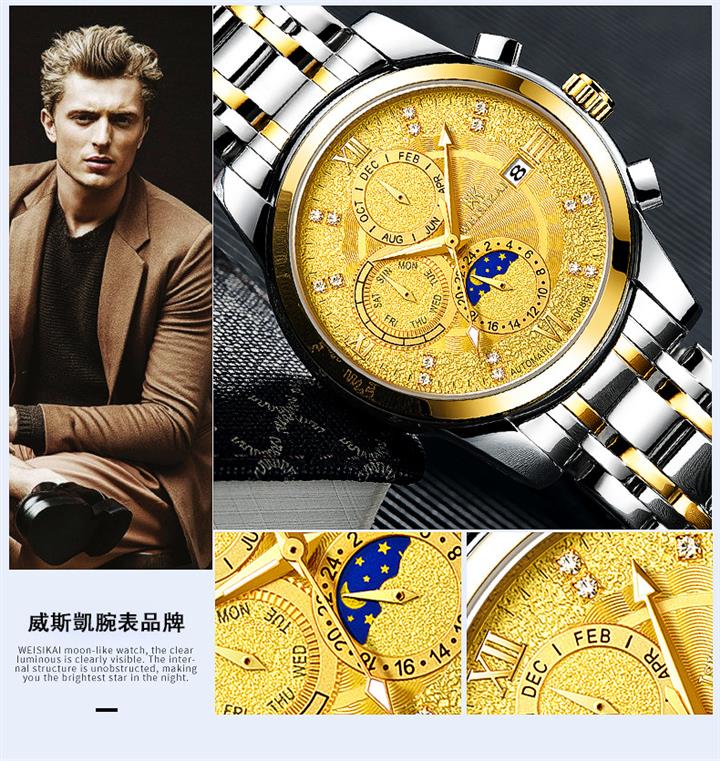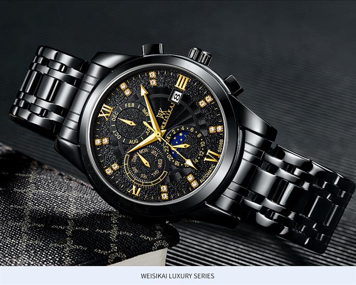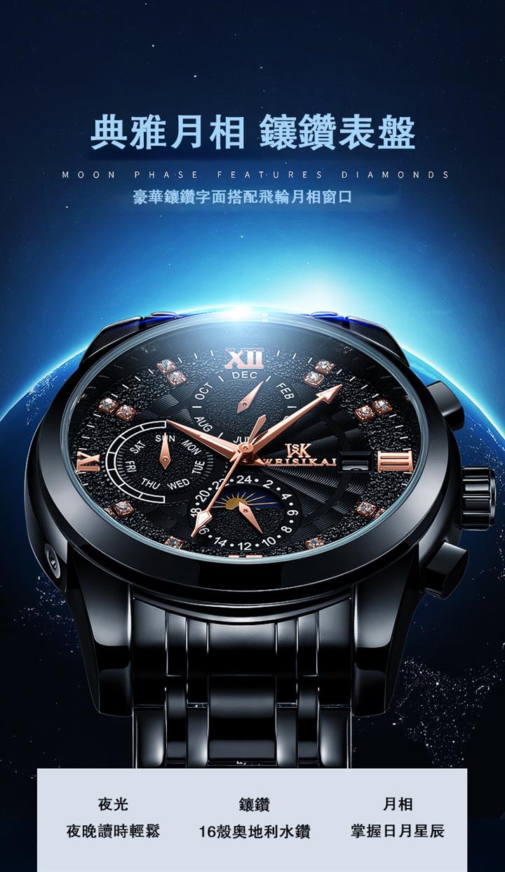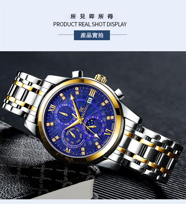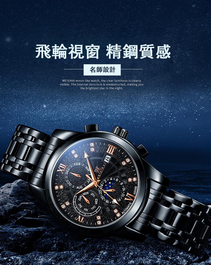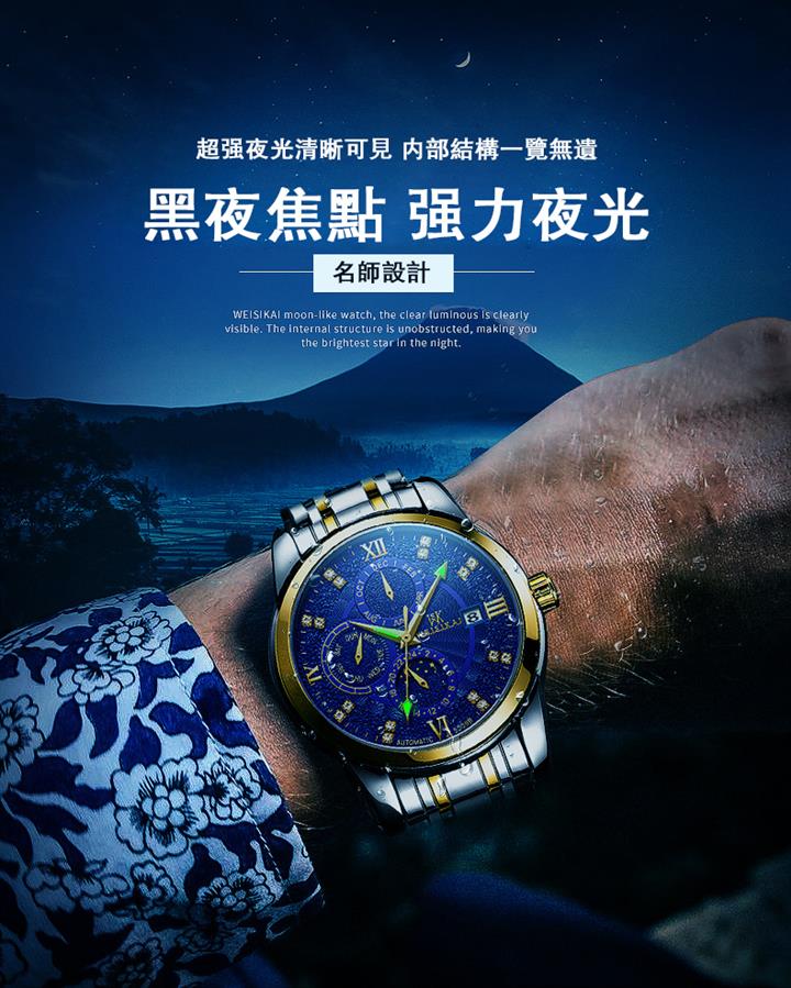 鏤空夜光六針三眼全自動機械錶Wat2095