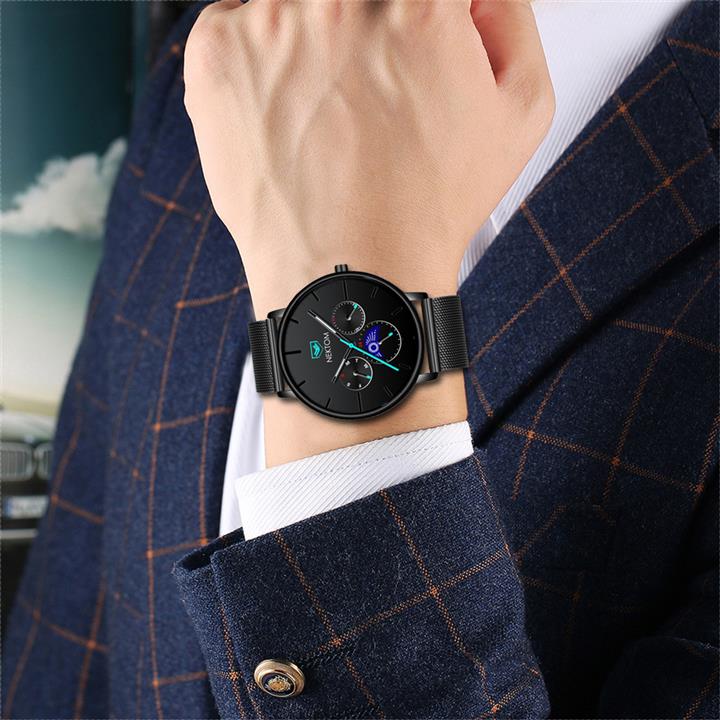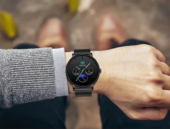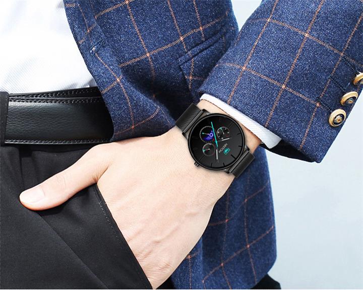 新款防水皮带腕表 简约时尚休闲情侣超薄男士手表黑色极简石英表 wat733