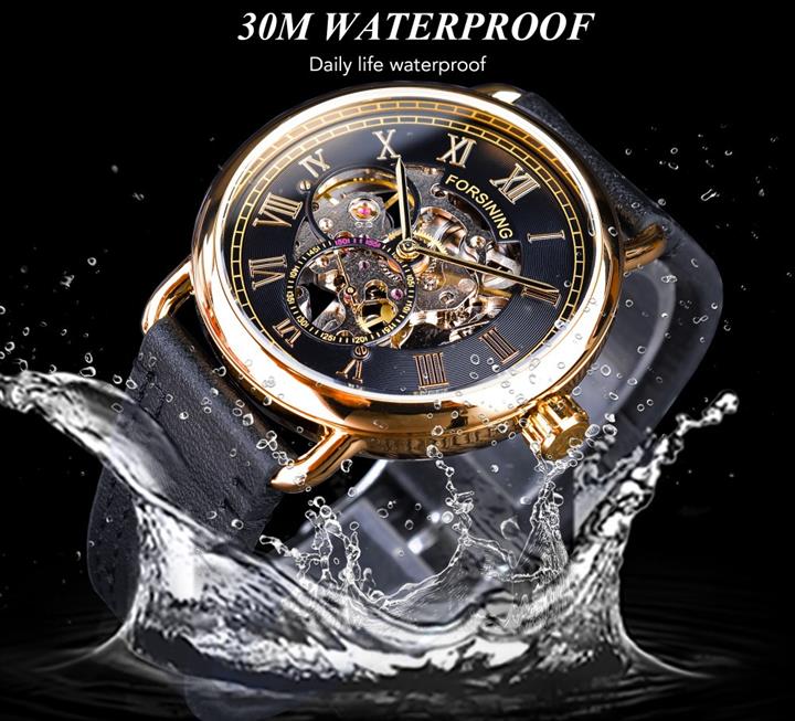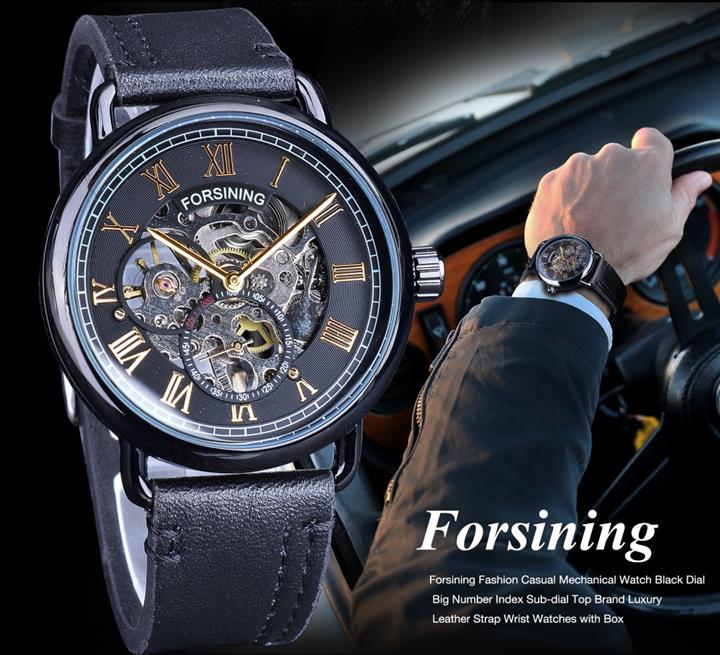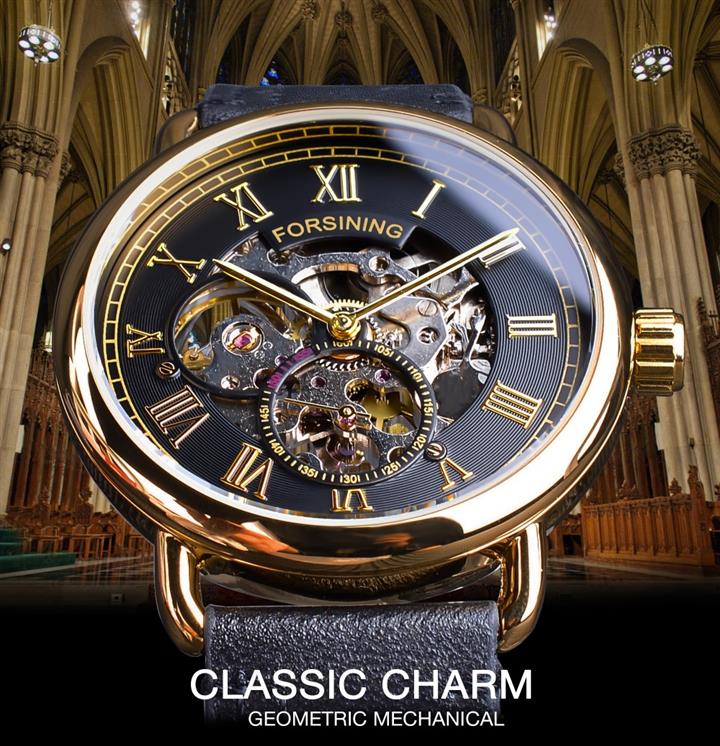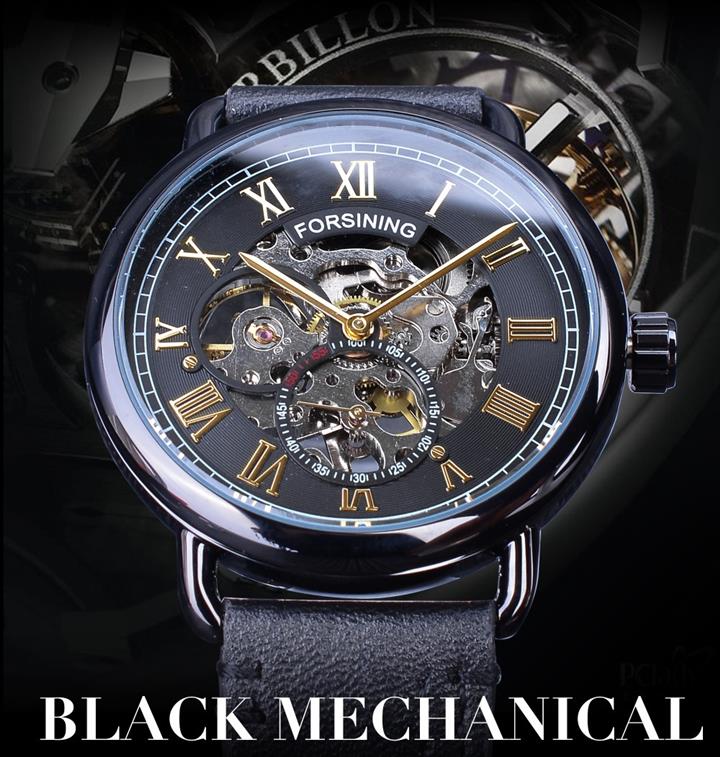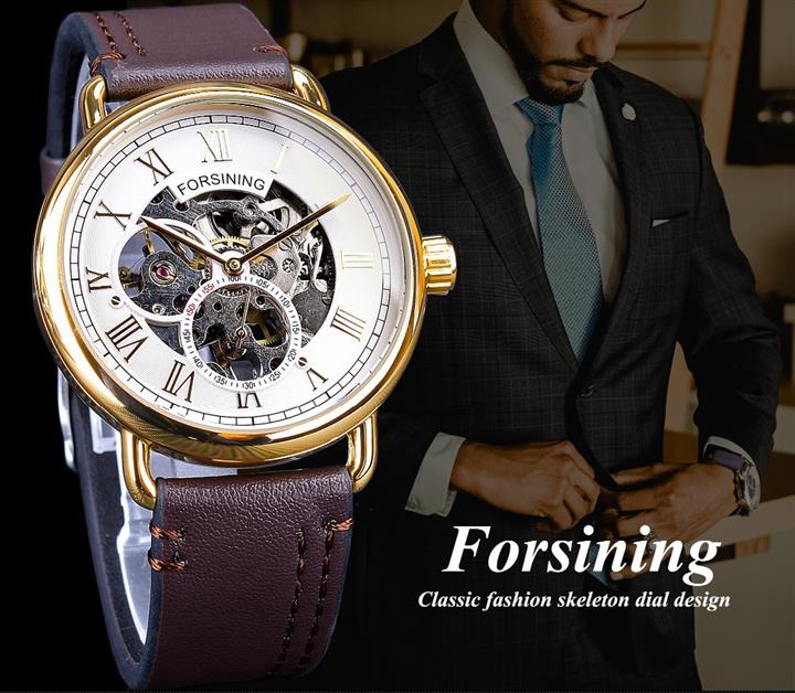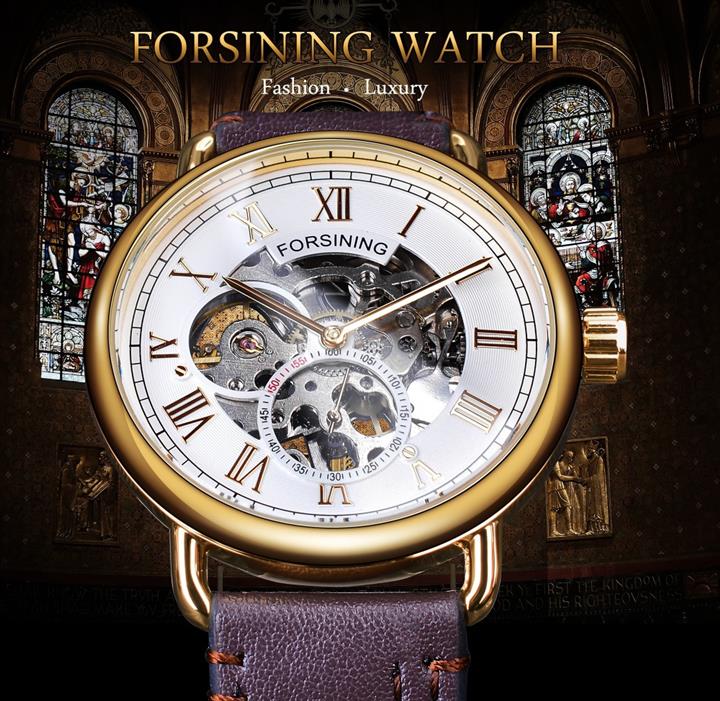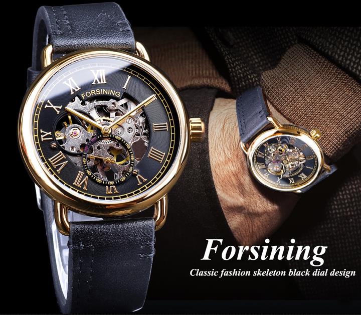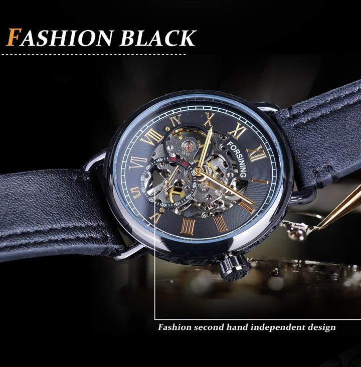 新款forsining男士時尚休閒經典名錶鏤空防水機械手錶wat1145