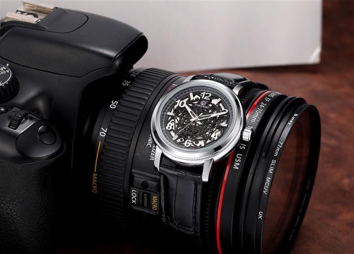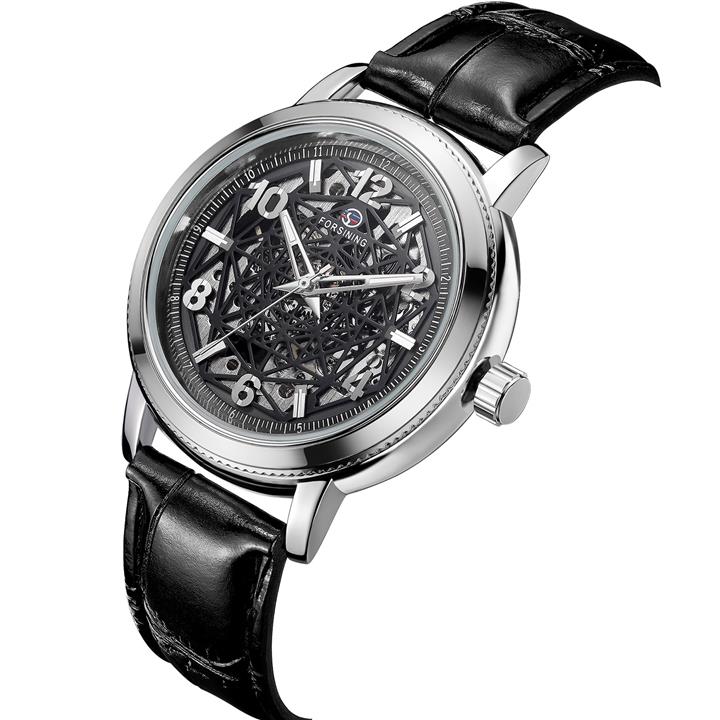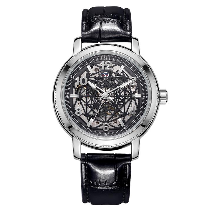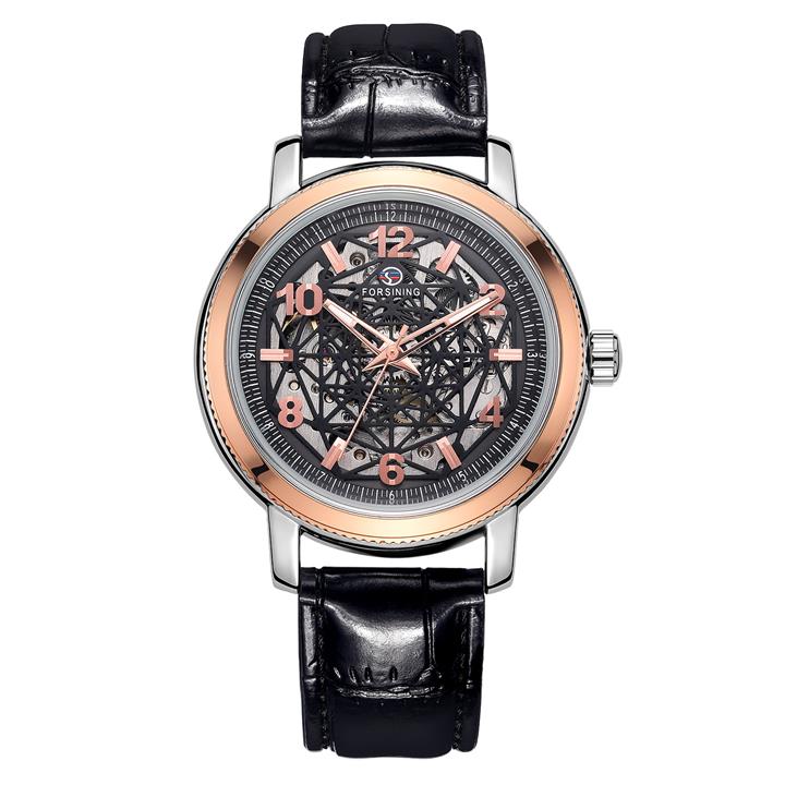 新款forsining男士時尚休閒經典名錶鏤空防水機械手錶wat1145
