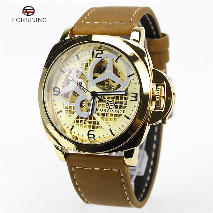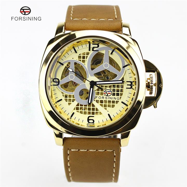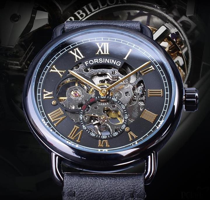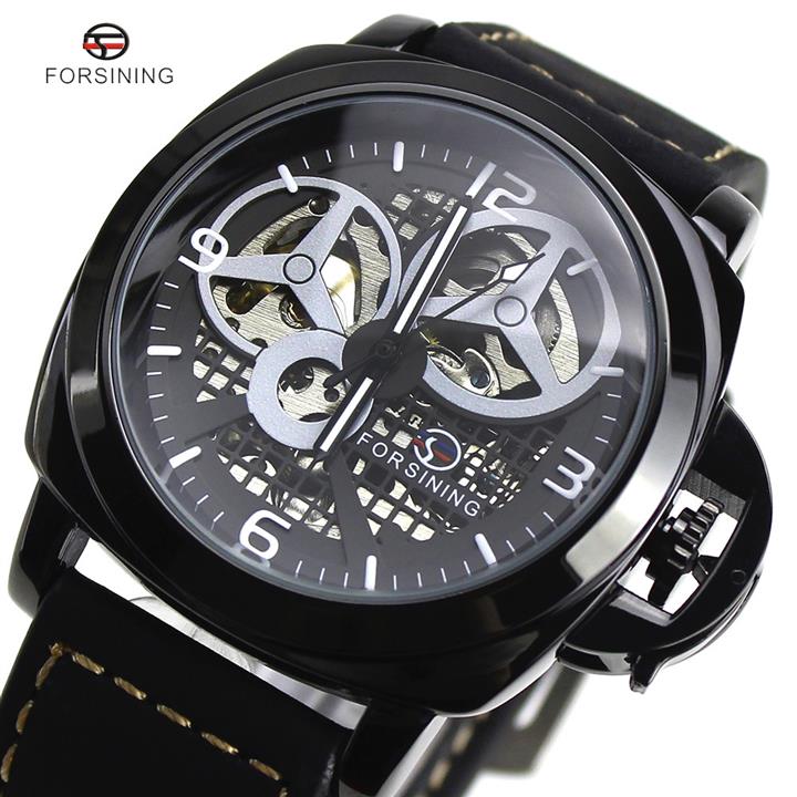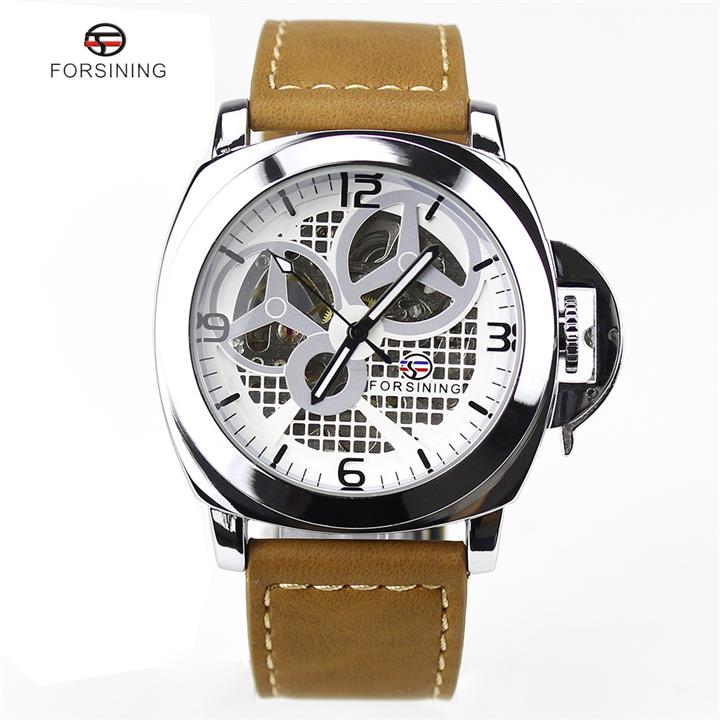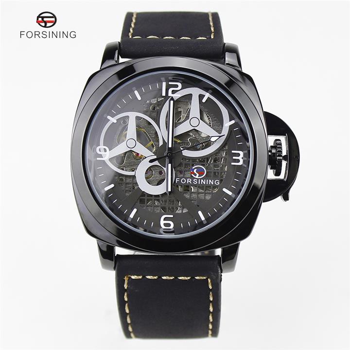新款forsining男士時尚休閒經典名錶鏤空防水機械手錶wat1145
