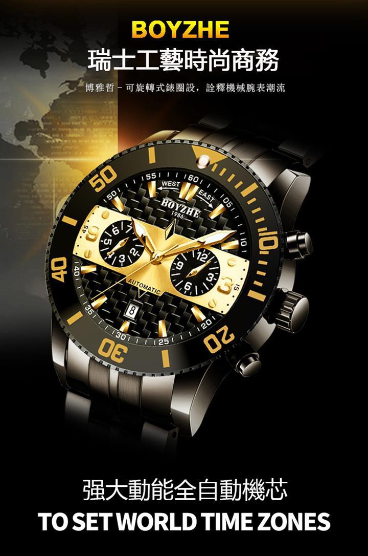 日月星期顯示,不鏽鋼機械手錶HKD$768