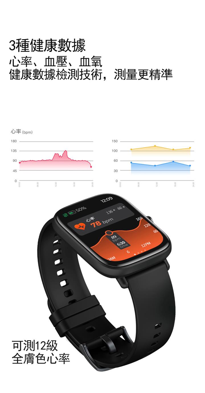 大屏運動藍牙計步測心率健康監測智能錶 Wat1858