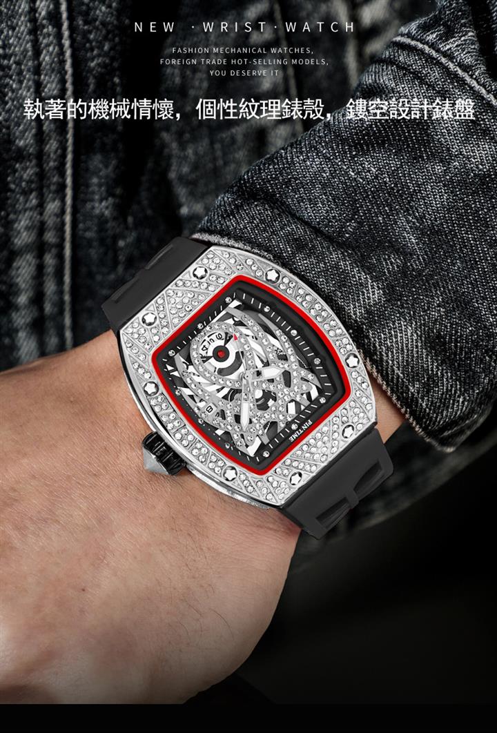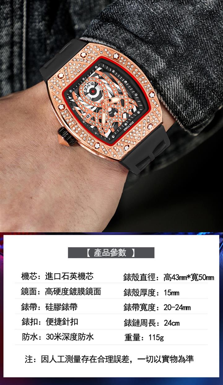 酒桶型硅膠帶帶閃鑽腕錶 Wat1869
