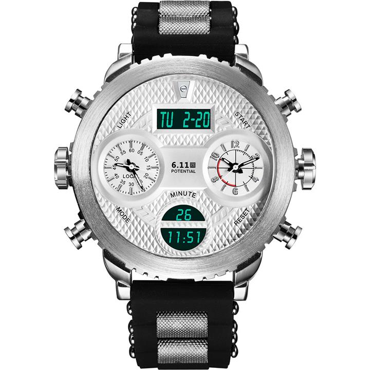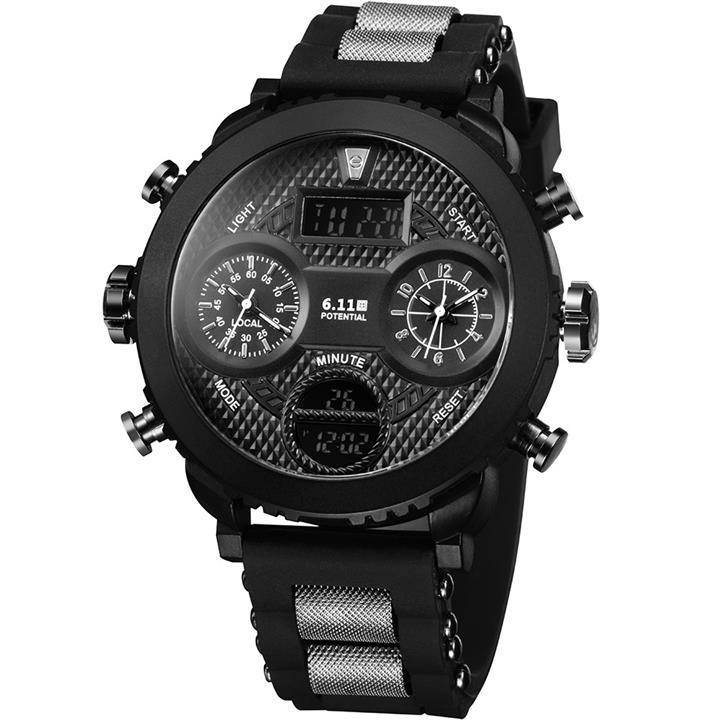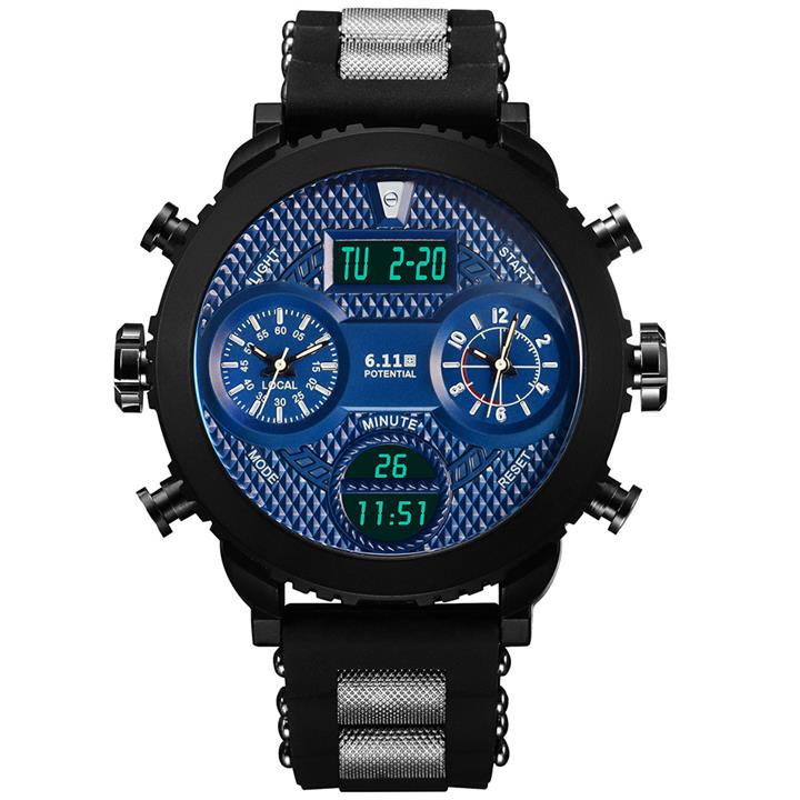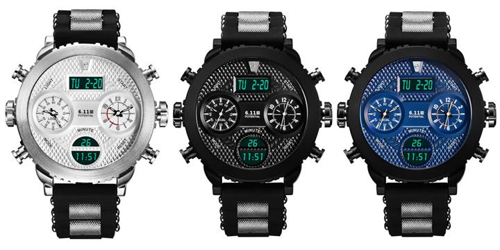 多功能三機芯戶外矽膠帶男錶電子錶運動表防水夜光 Wat1863