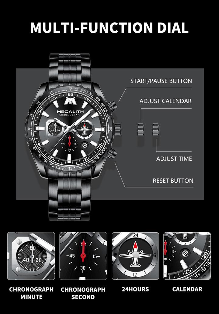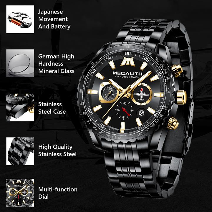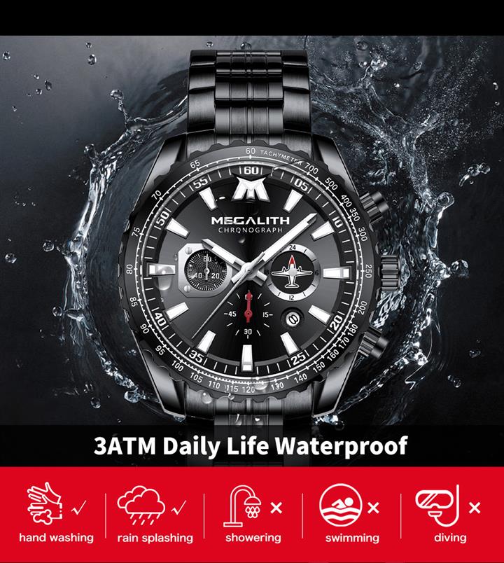 不銹鋼男表夜光防水日曆腕表 Wat1871