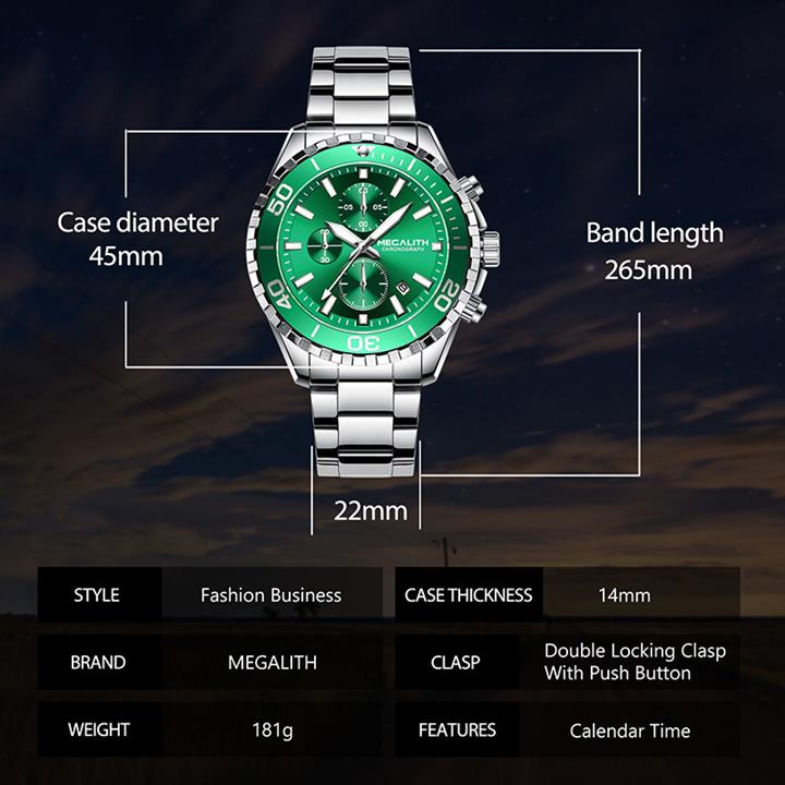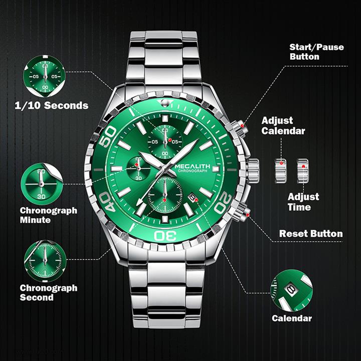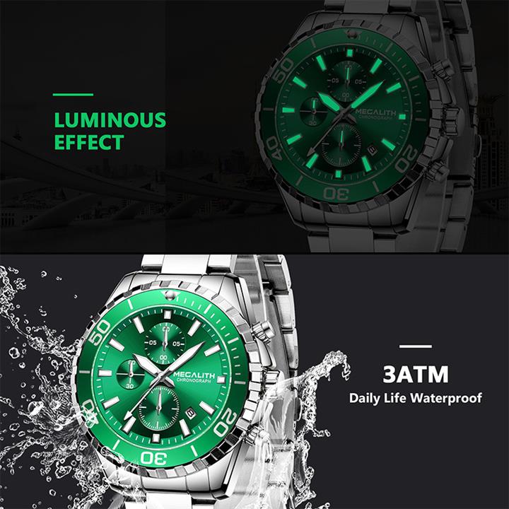 綠色不銹鋼腕表防水男士石英表 Wat1869