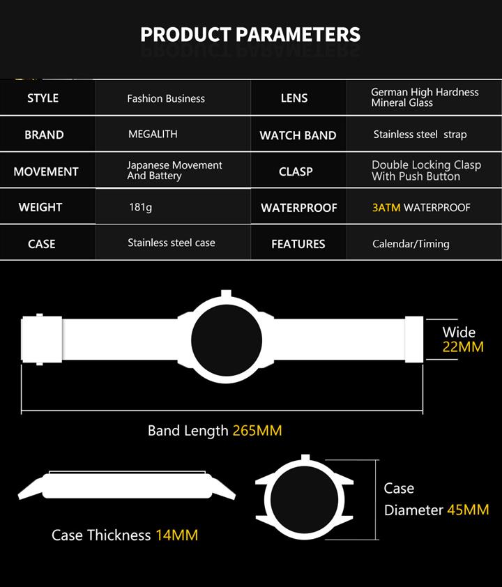 商務簡約石英表潮流六針防水錶米蘭尼斯鋼錶帶Wat45