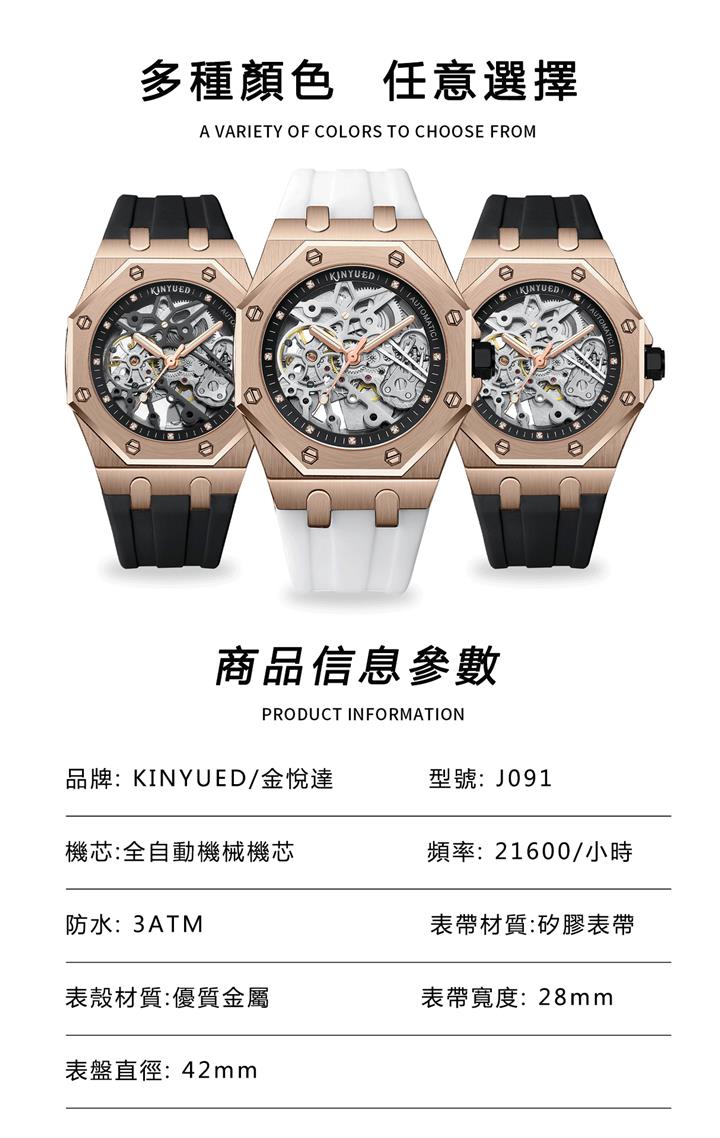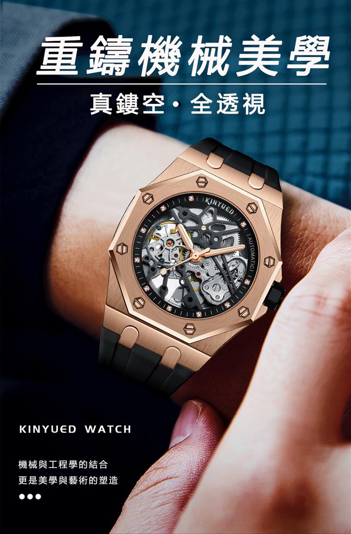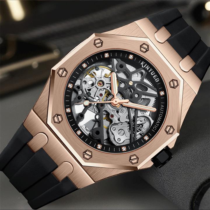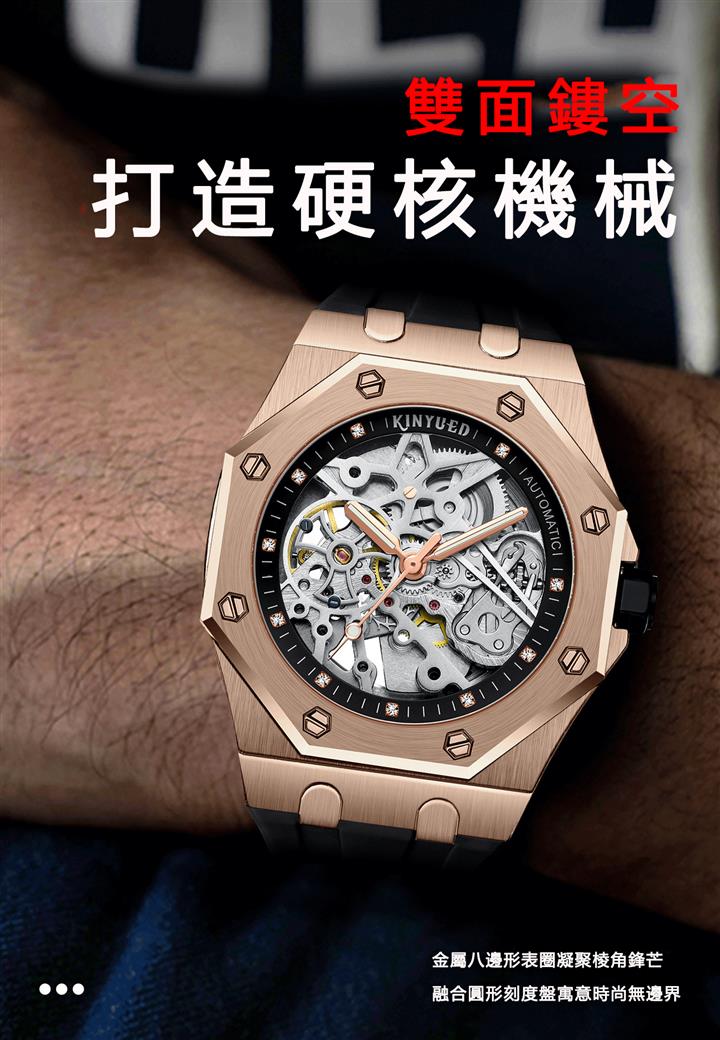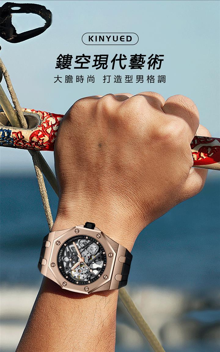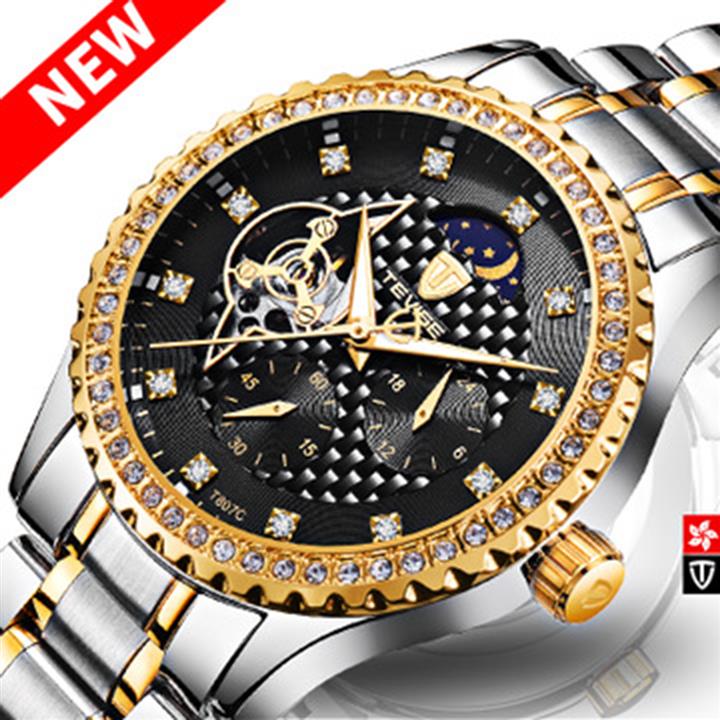 TEVISE全自動機械表鏤空精鋼商務男錶Wat04