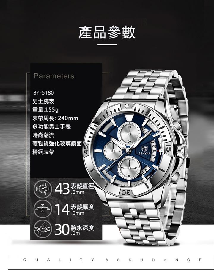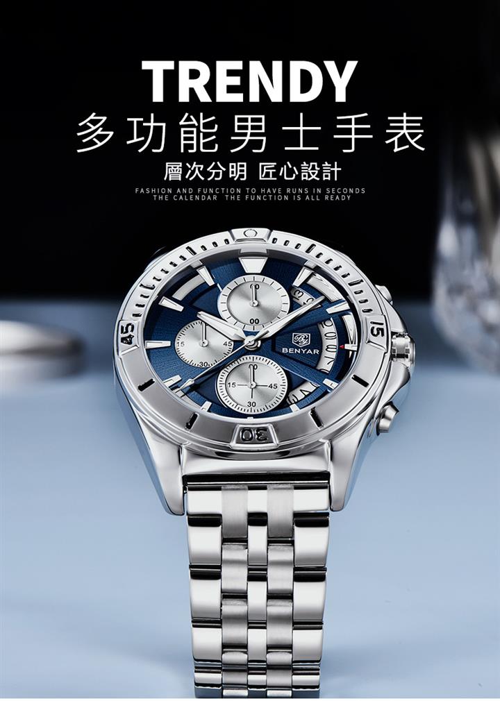 多功能時尚防水夜光男表 Wat1890