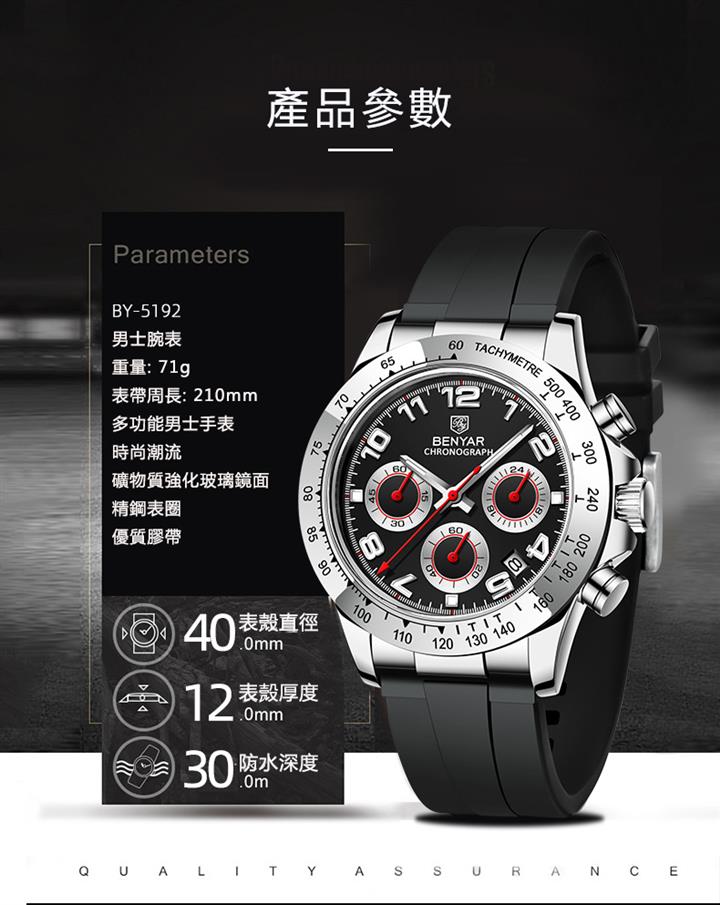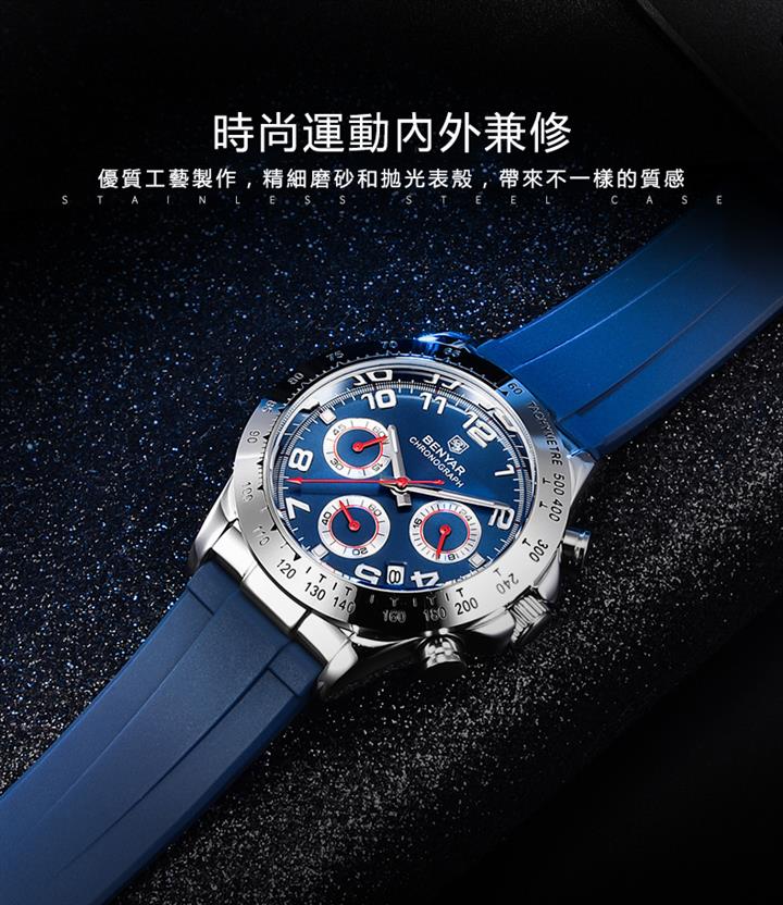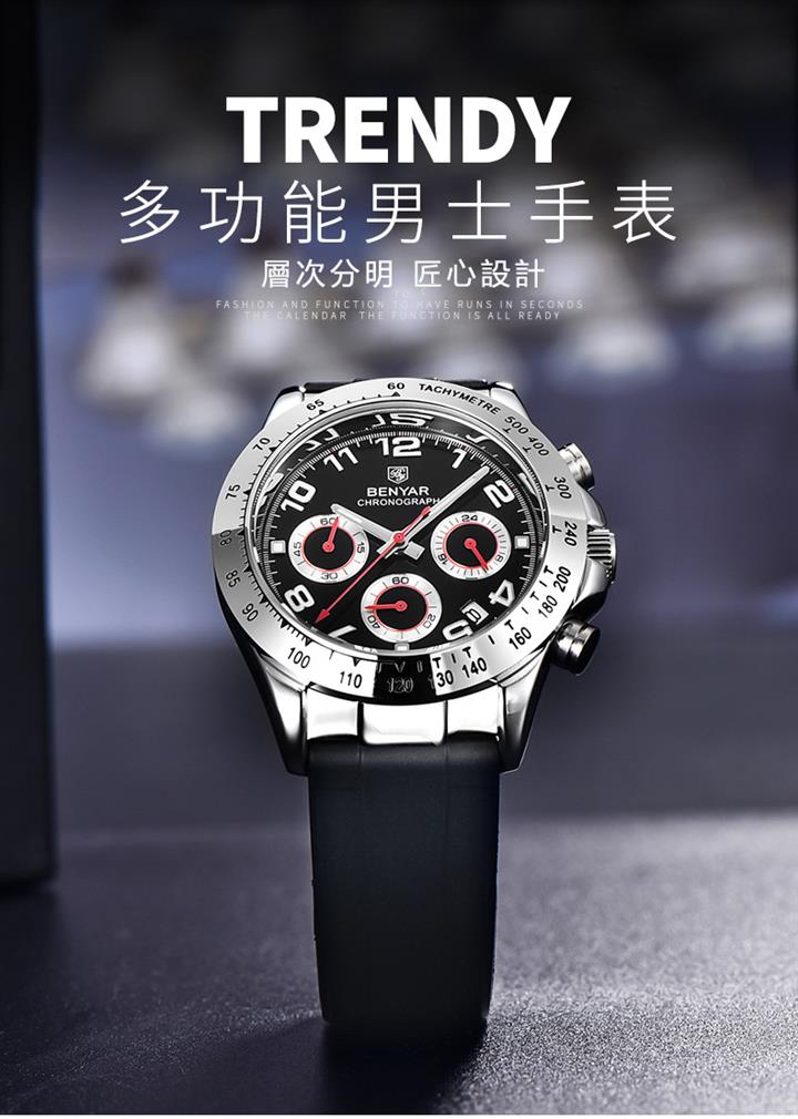 多功能男士腕錶陸針皮帶運動男錶wat110