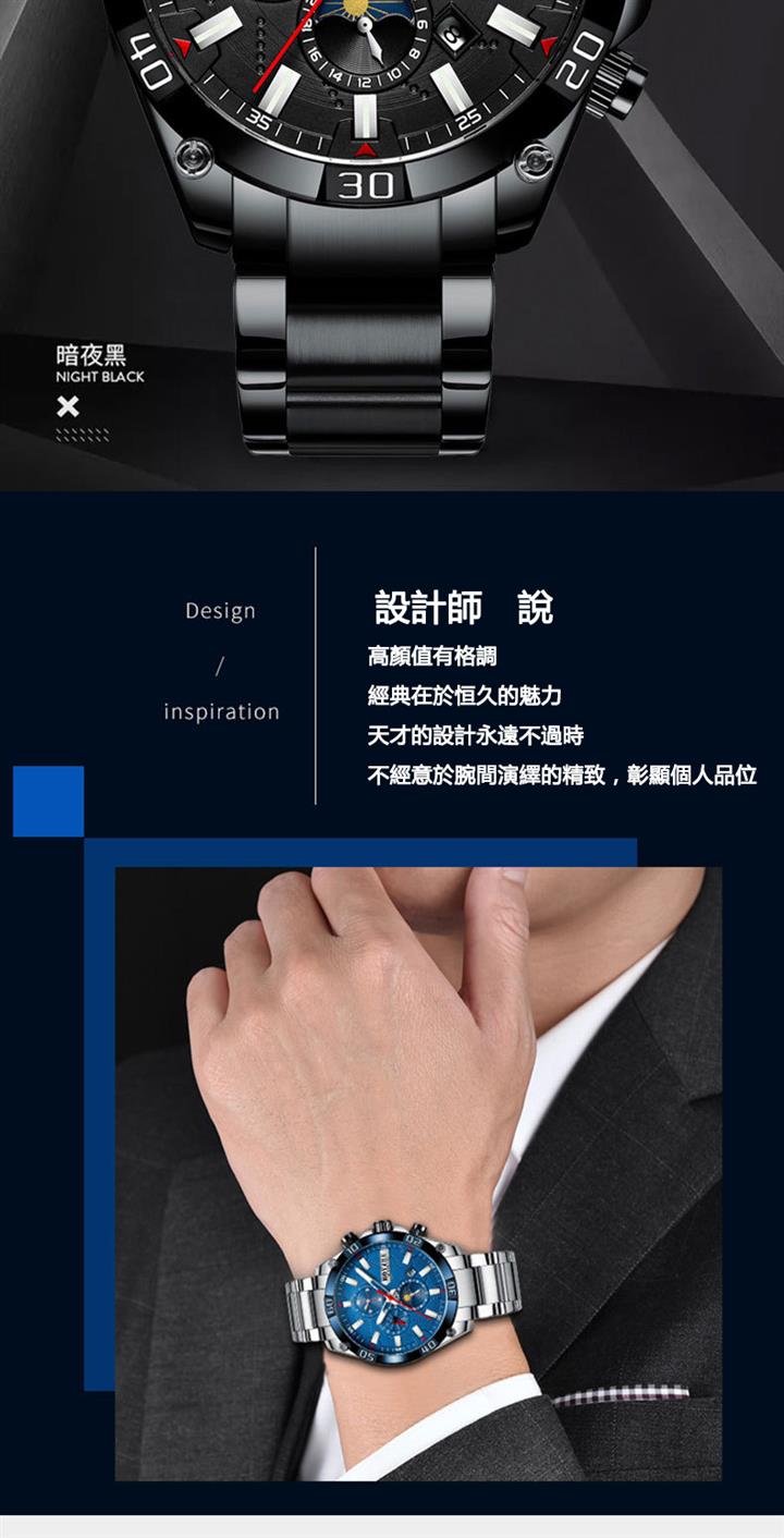 夜光時尚休閑不銹鋼日歷腕錶 wat1852