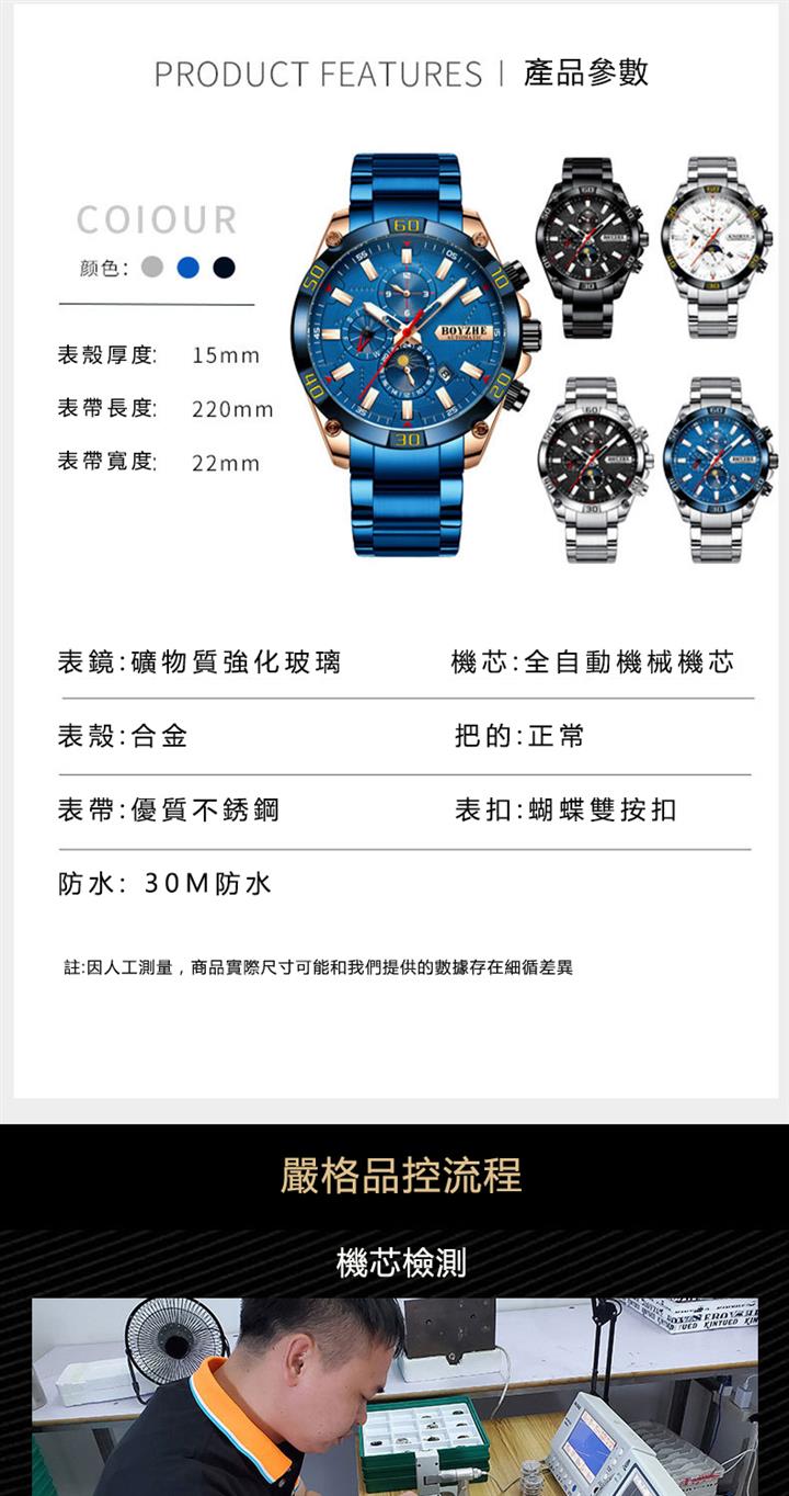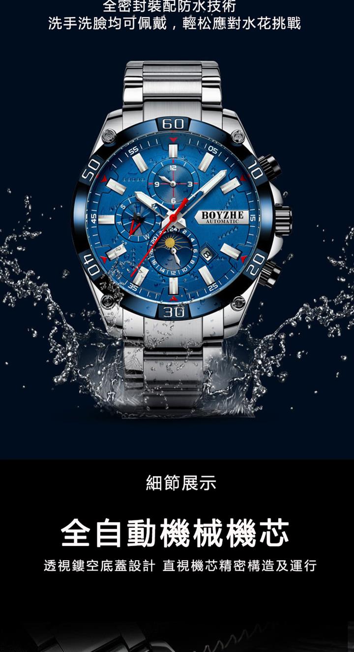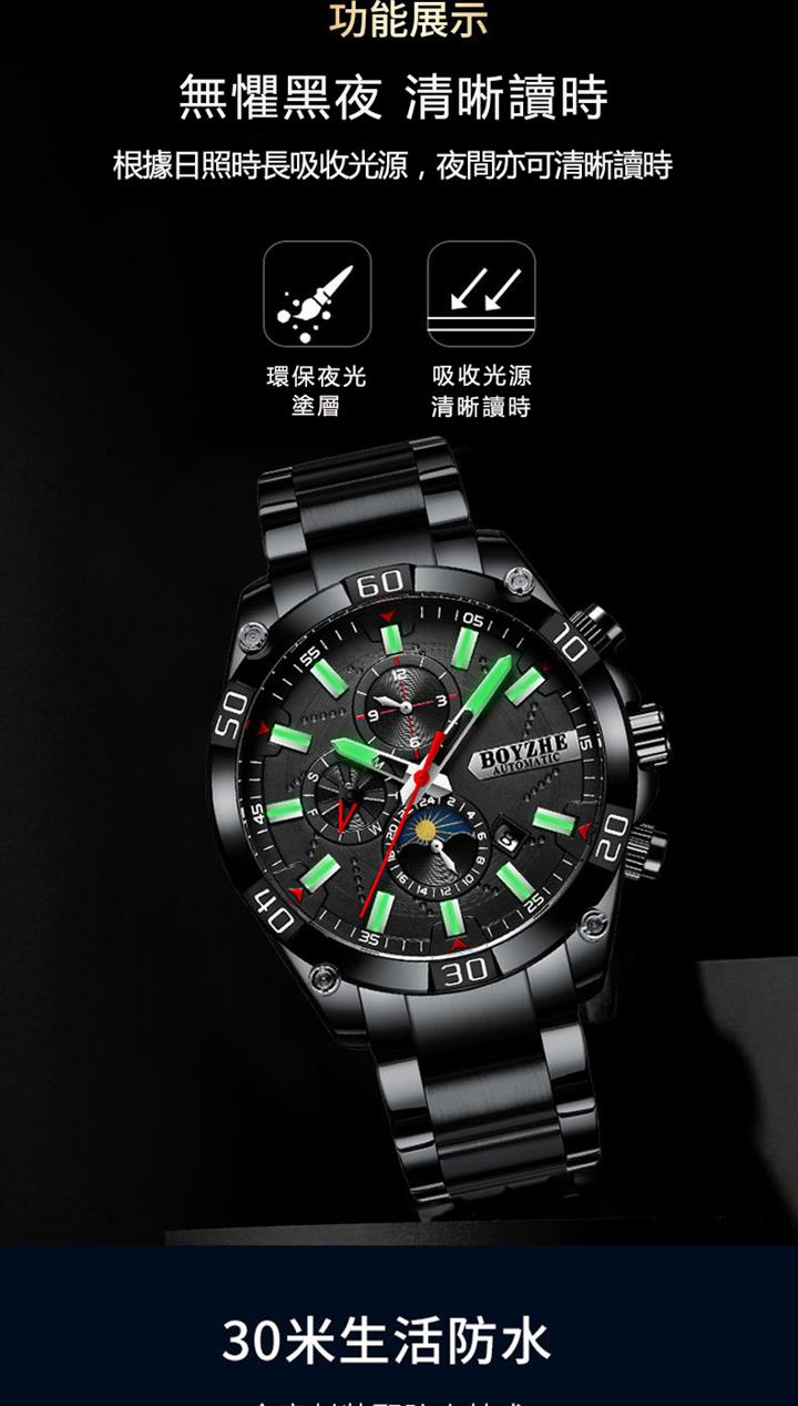 全自動鏤空實心鋼帶夜光防水表 Wat1876