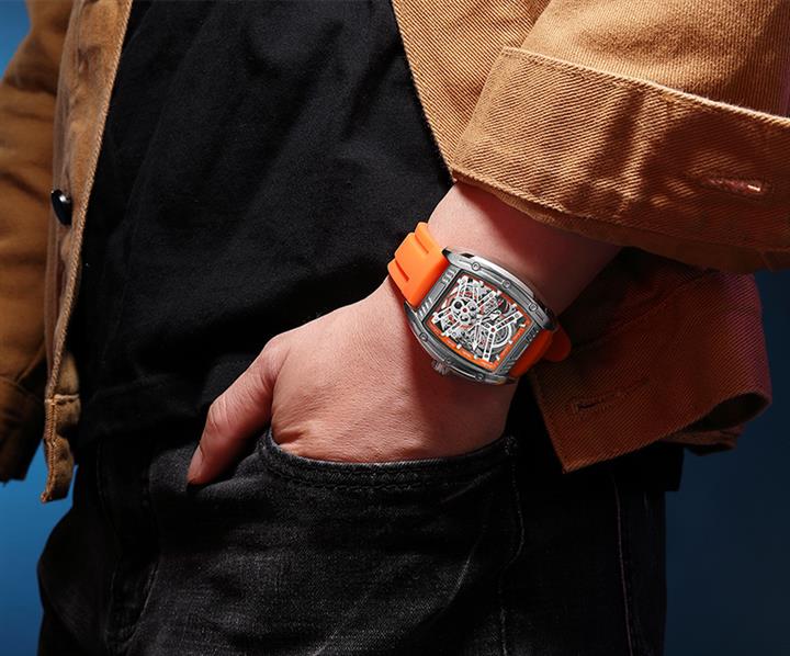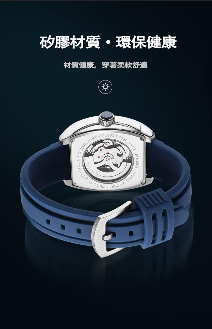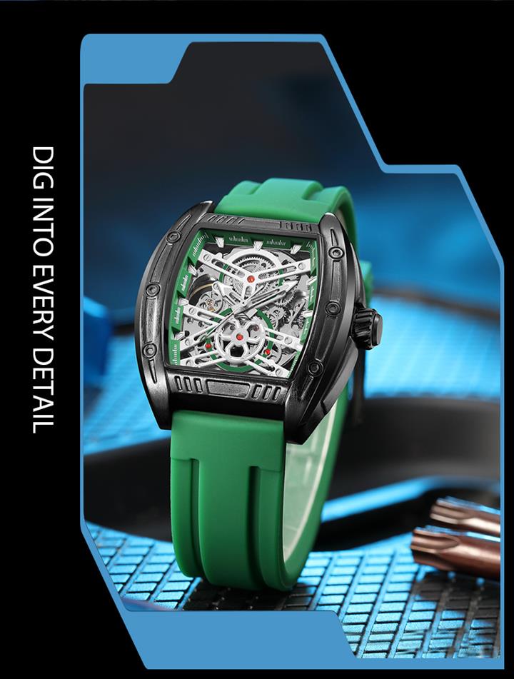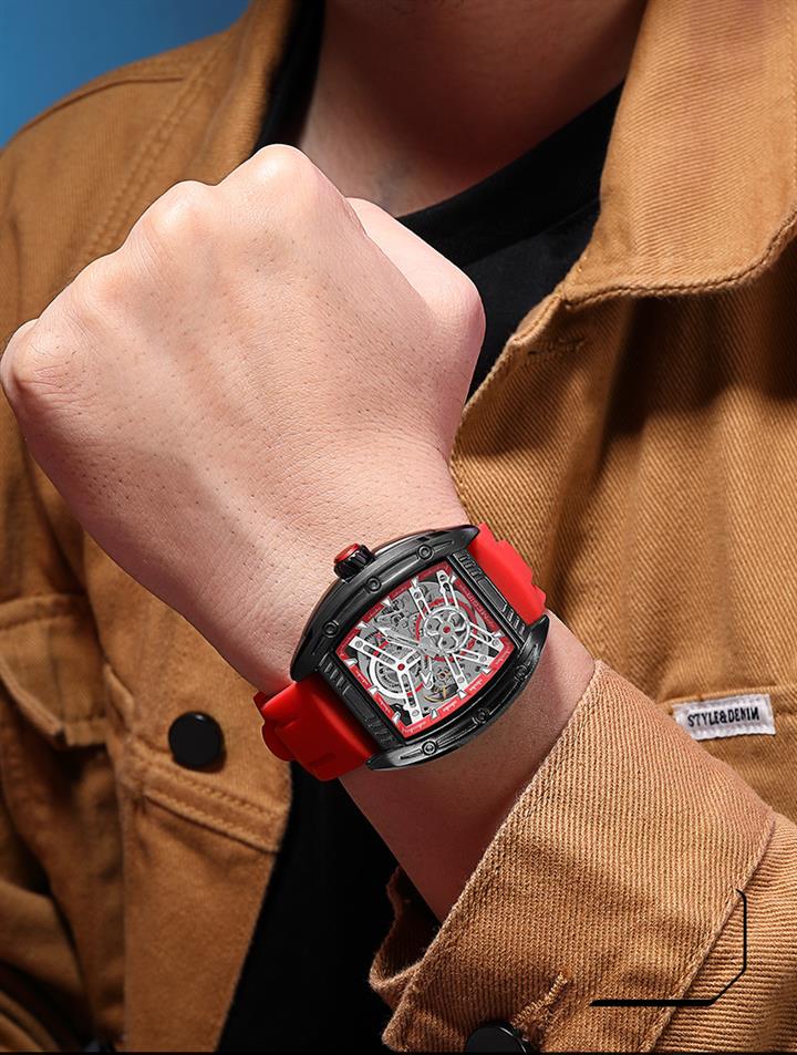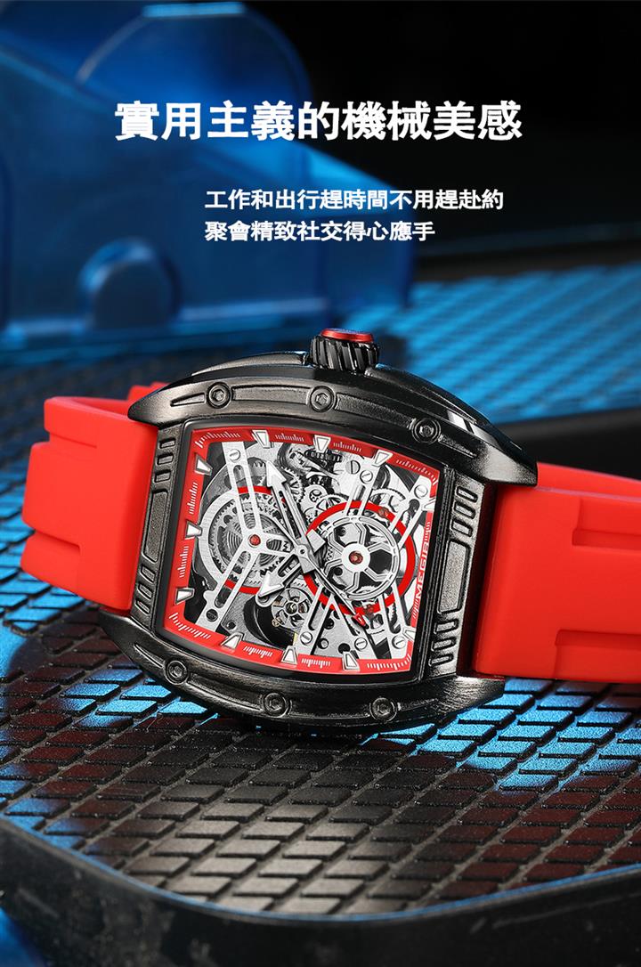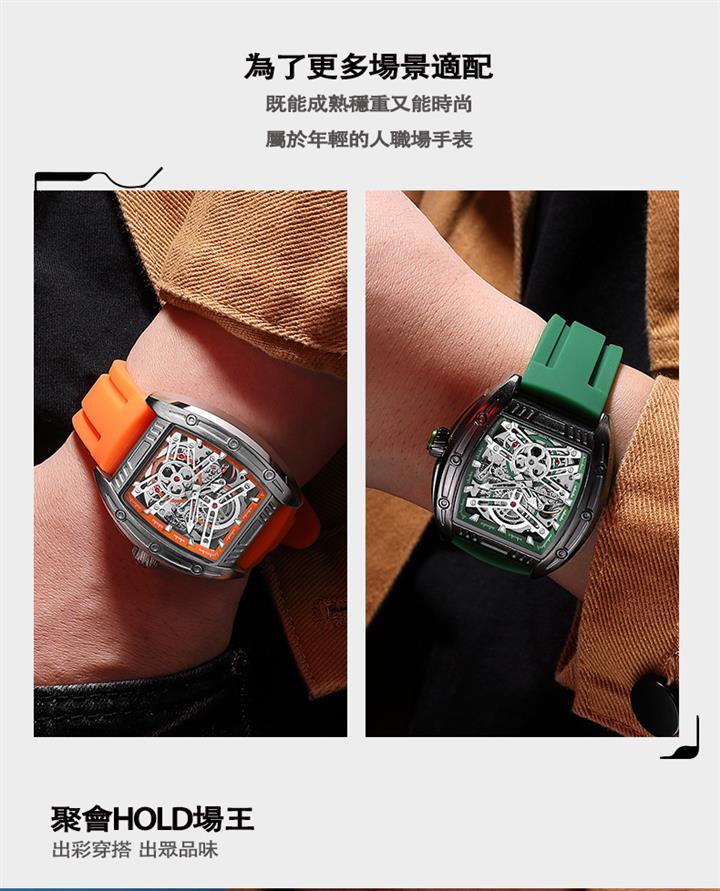 多色硅膠錶帶酒桶型機械運動錶 Wat1928