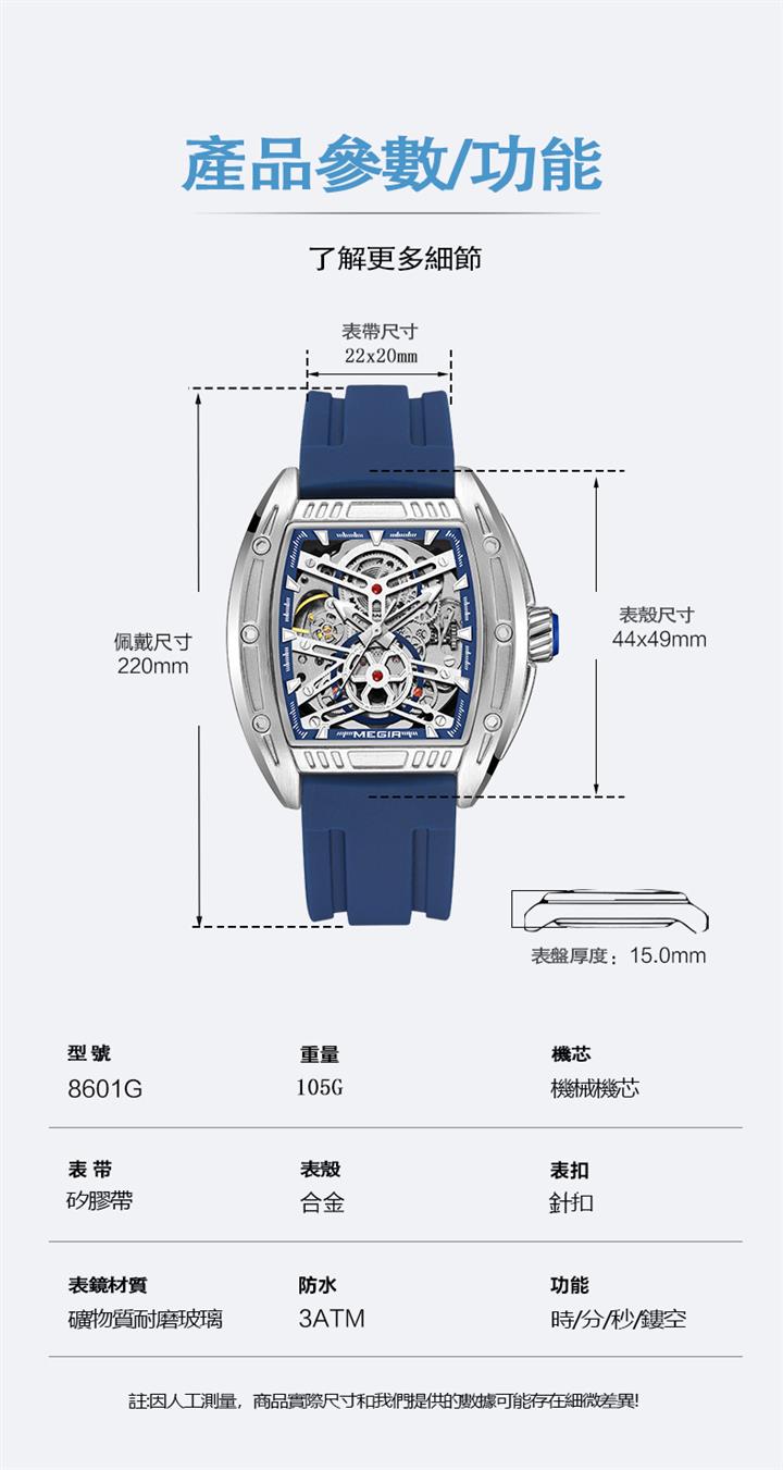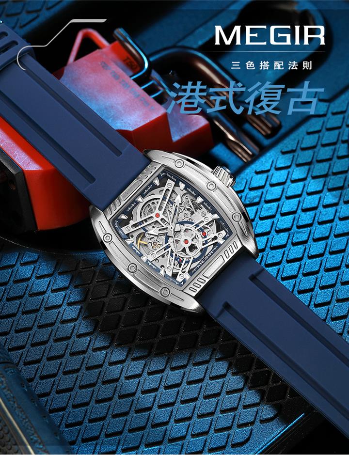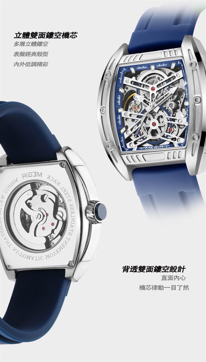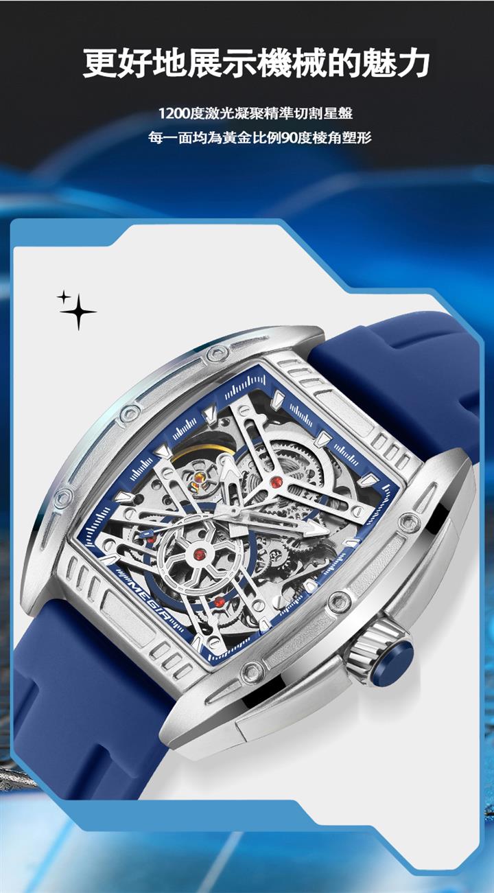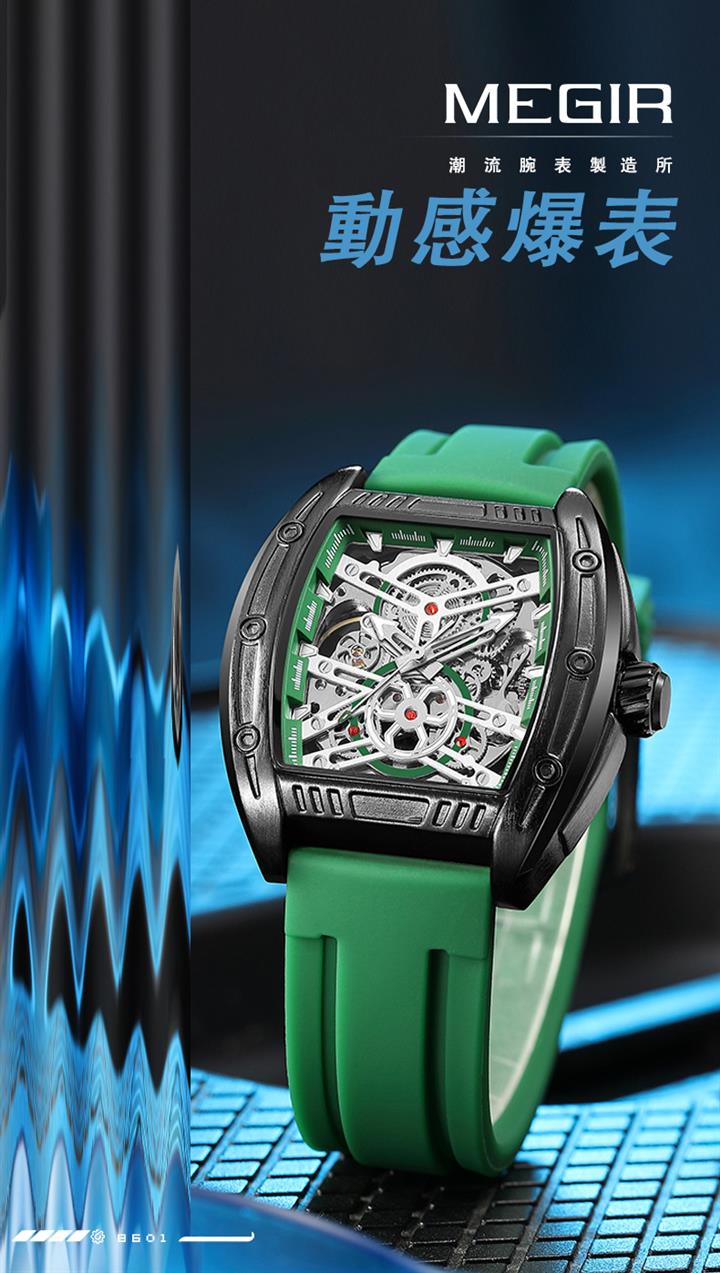 多色硅膠錶帶酒桶型機械運動錶 Wat1928