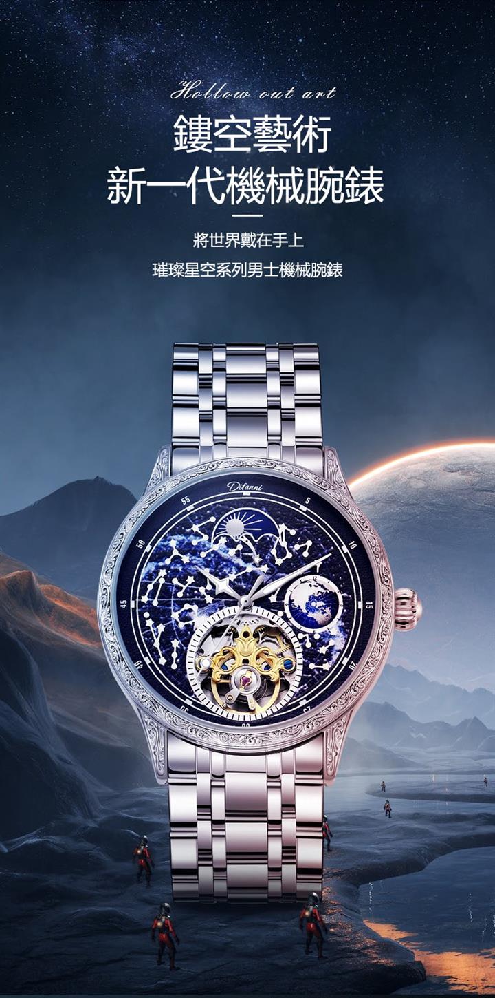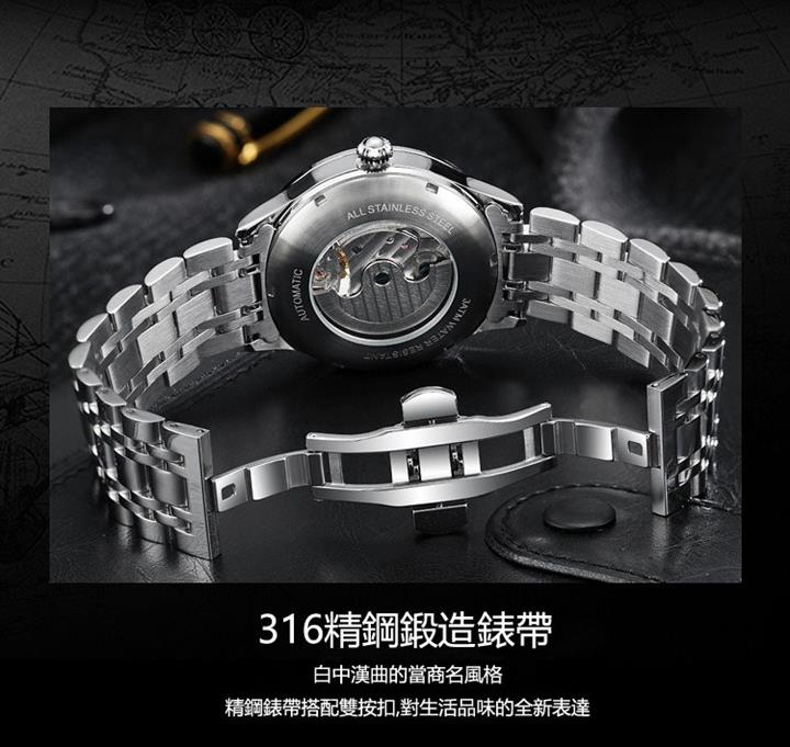 方形男士全自動機械鏤空防水腕錶 wat1844