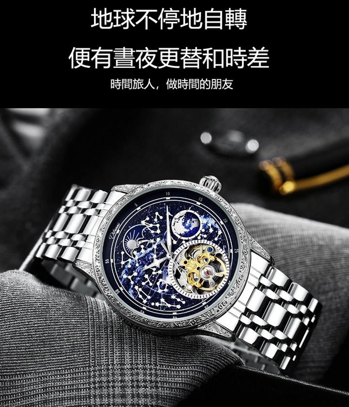 奇洛時新款鏤空手錶男士全自動陀飛輪機械表 Wat1866