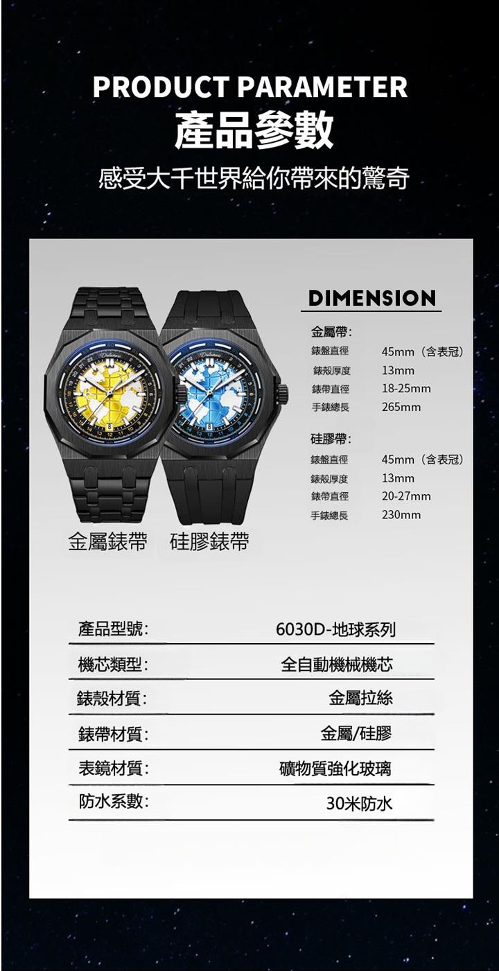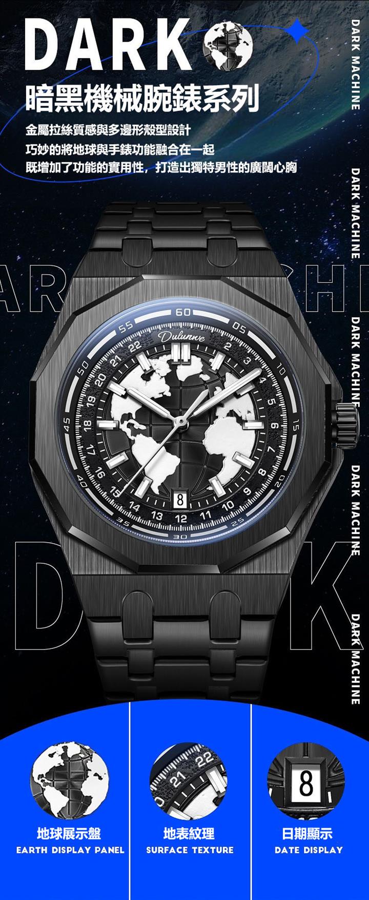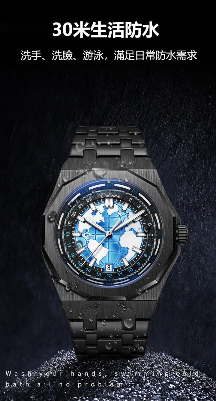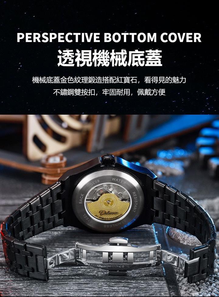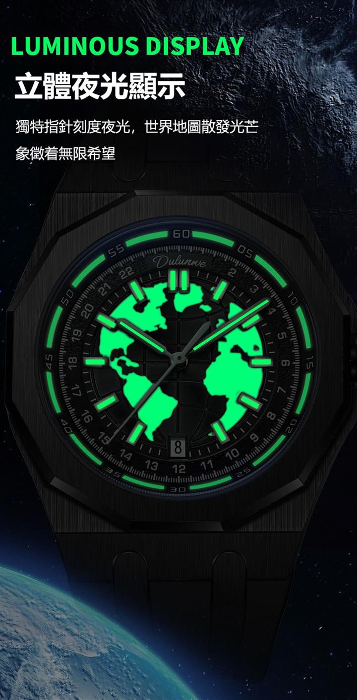 夜光黑水鬼全自動機械防水精鋼表Wat2034