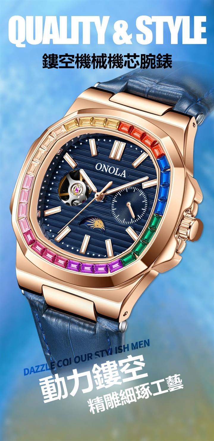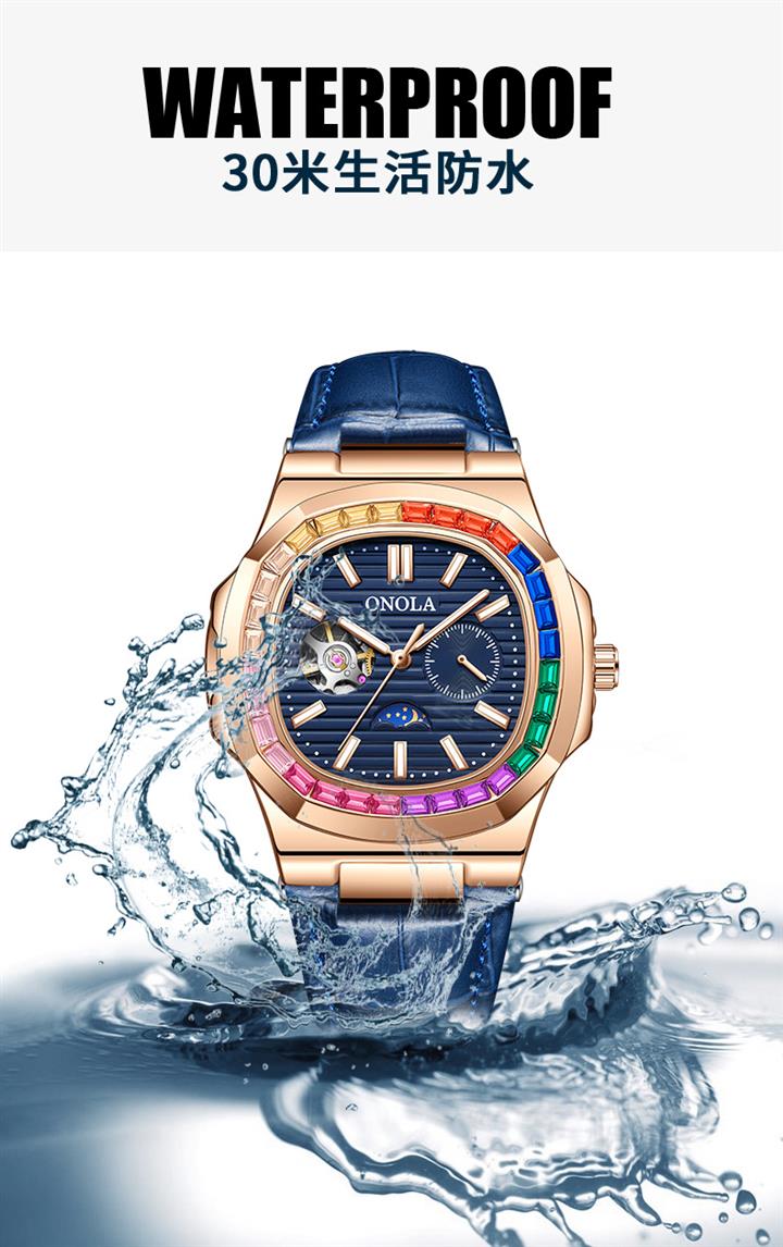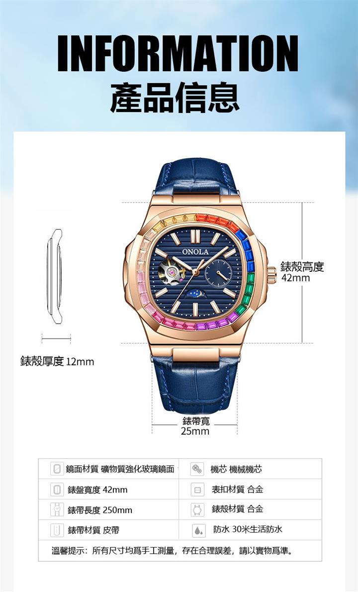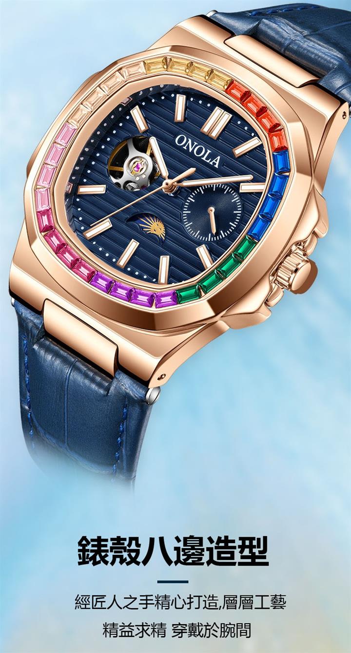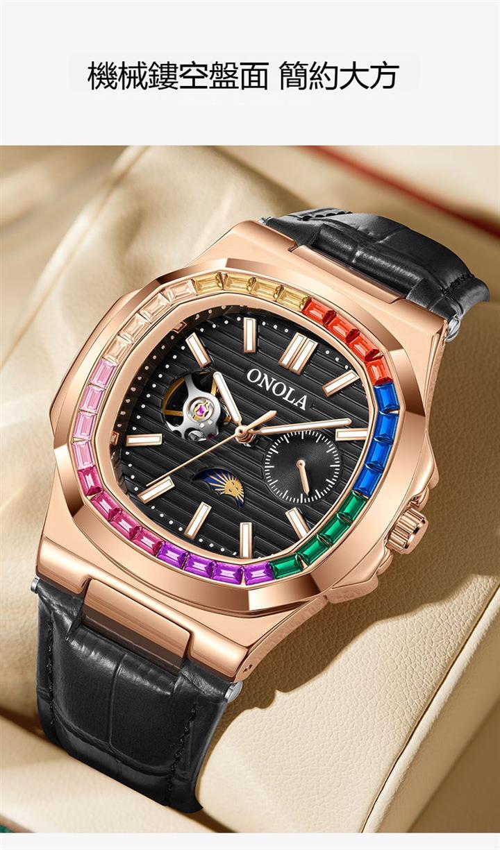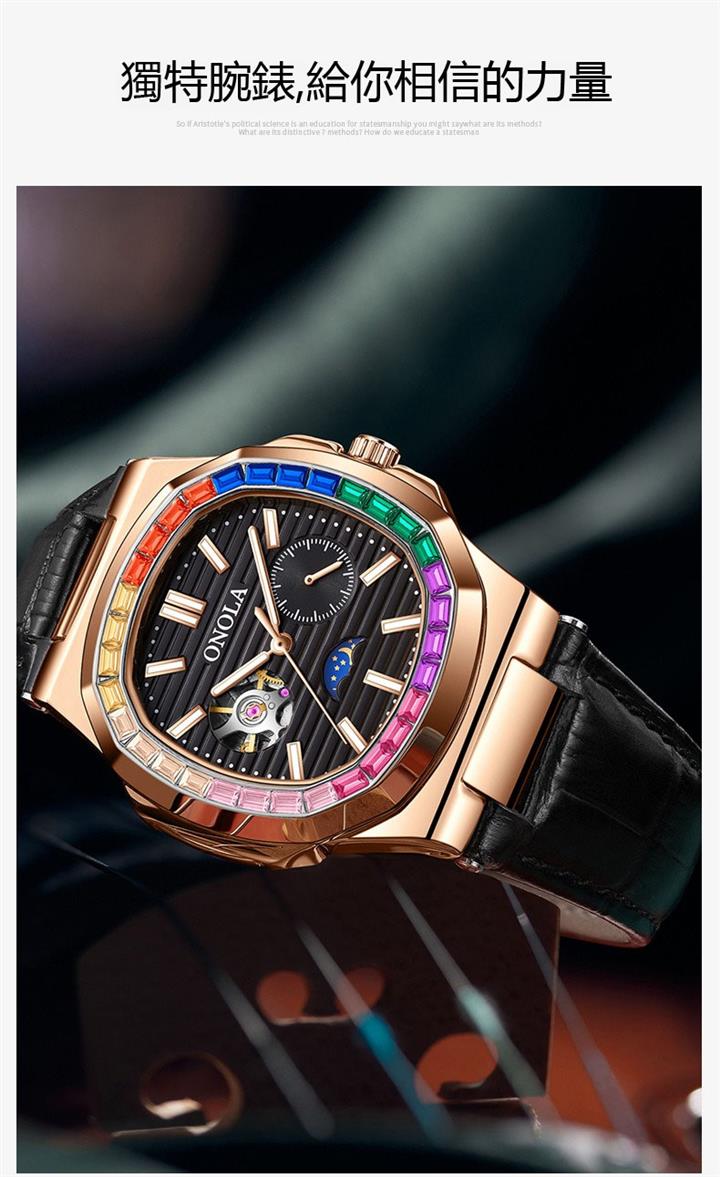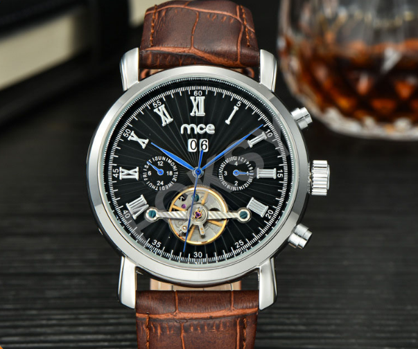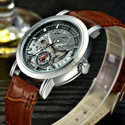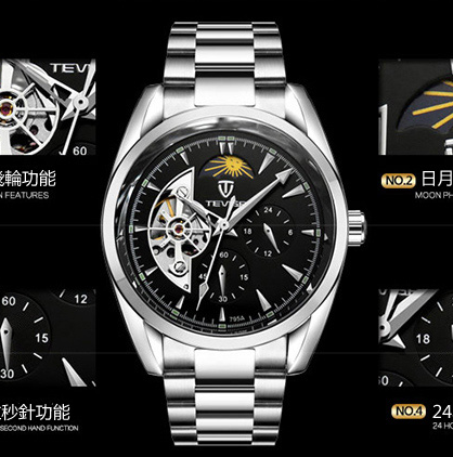 TEVISE全自動機械表鏤空精鋼商務男錶Wat04