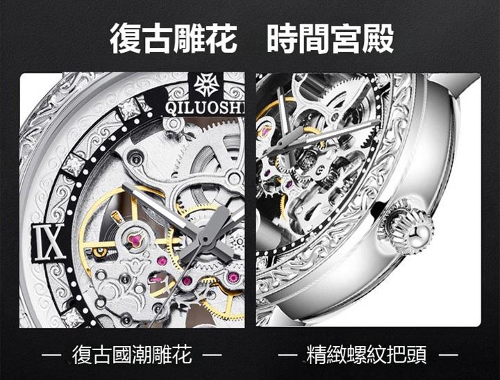 全自動機械鋼帶時尚復古動感鏤空錶盤男錶Wat38