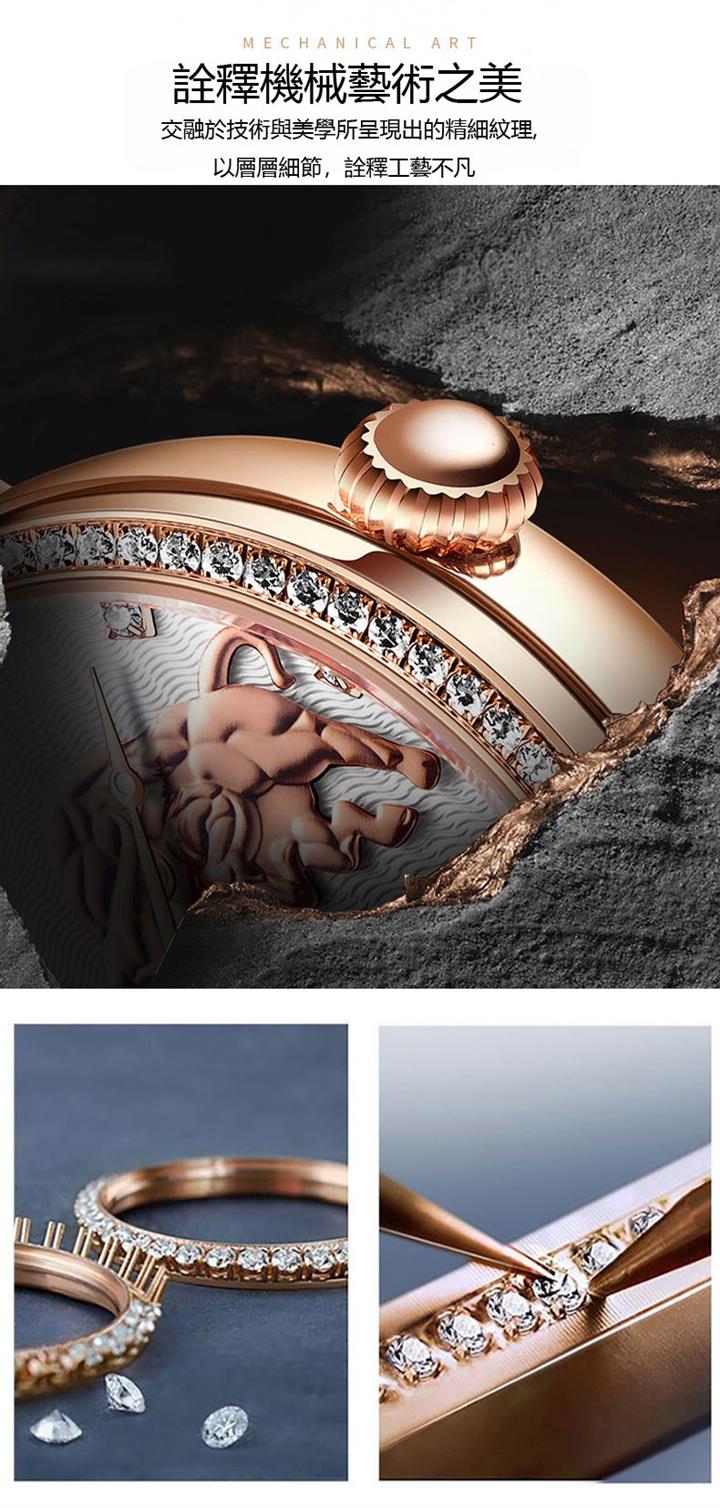 鑲鉆鏤空實心防水夜光機械表Wat2051