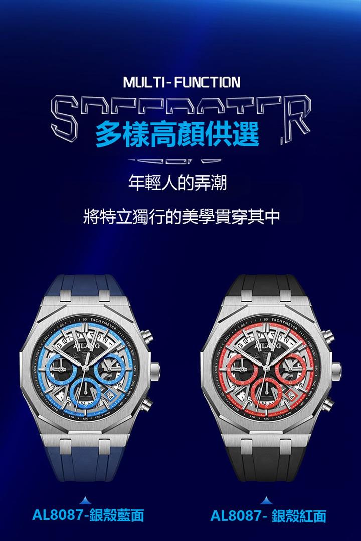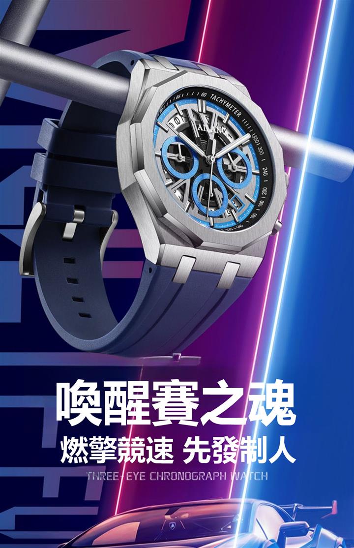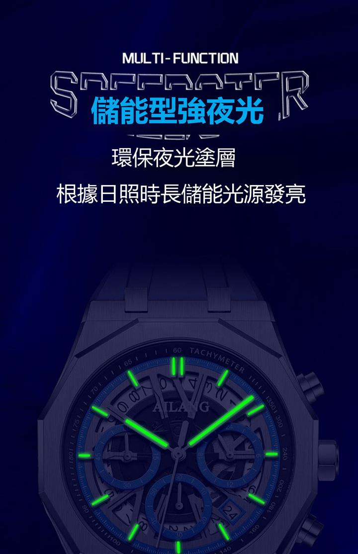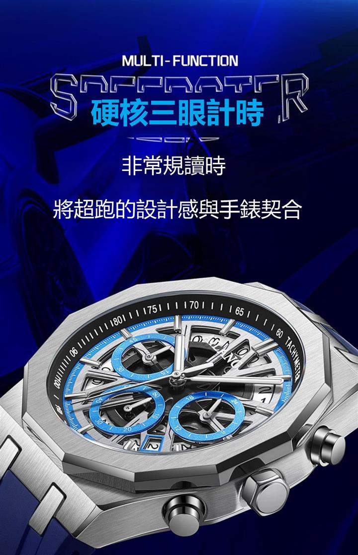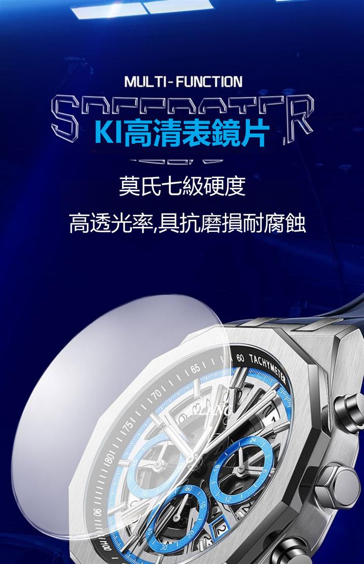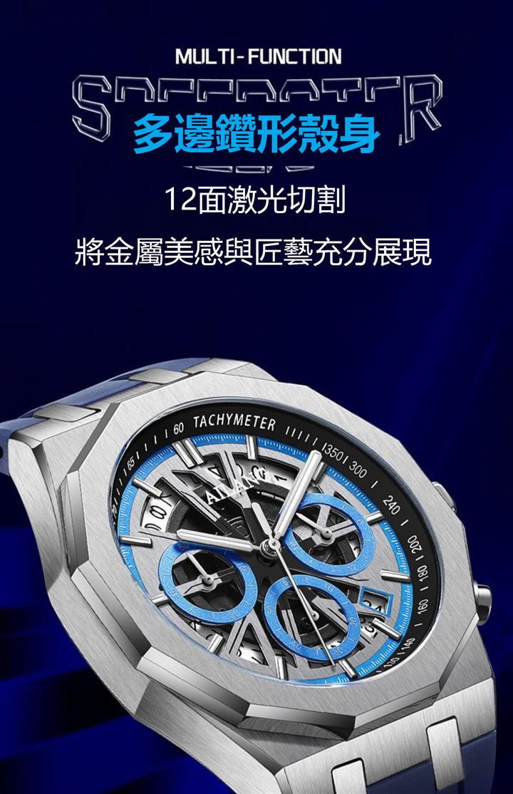 安哥拉寶斯炫彩全鋼錶帶六針石英錶多功能個性運動男士手錶wat1139