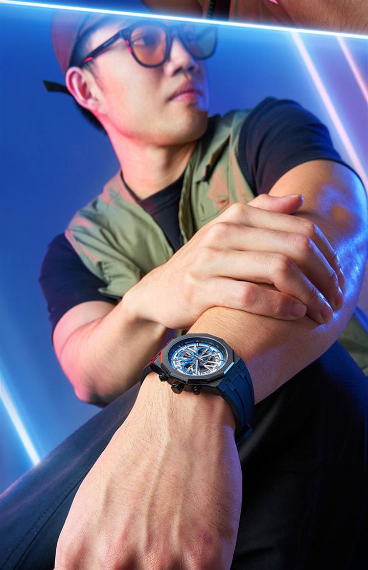 新款forsining男士時尚休閒經典名錶鏤空防水機械手錶wat1145