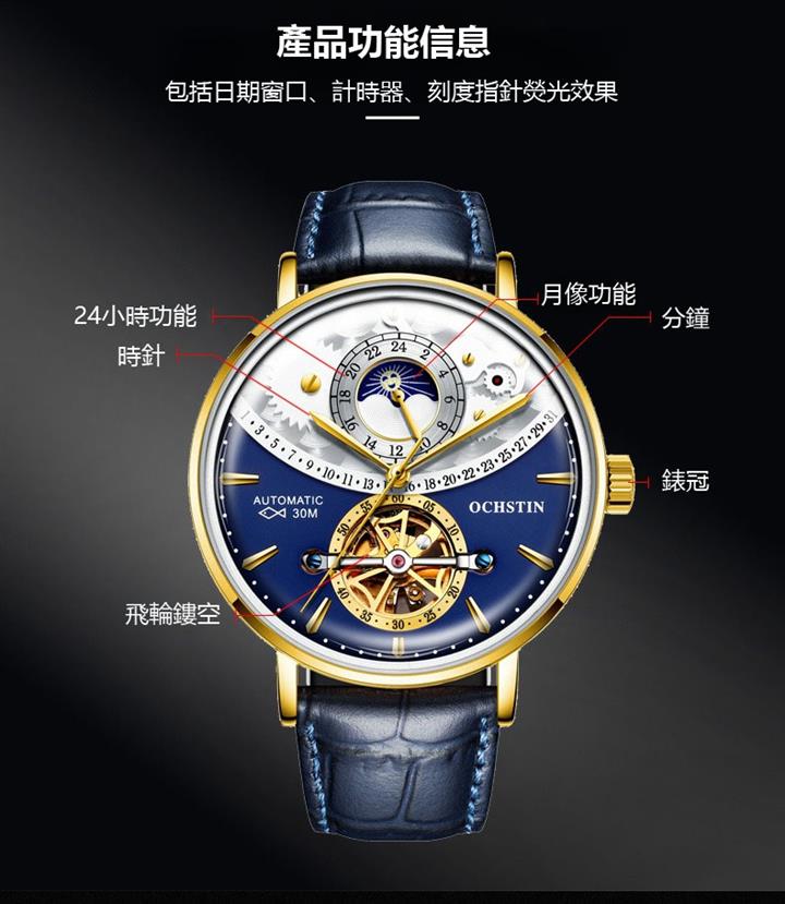 爆款男士時尚鏤空全自動機械表 Wat1895