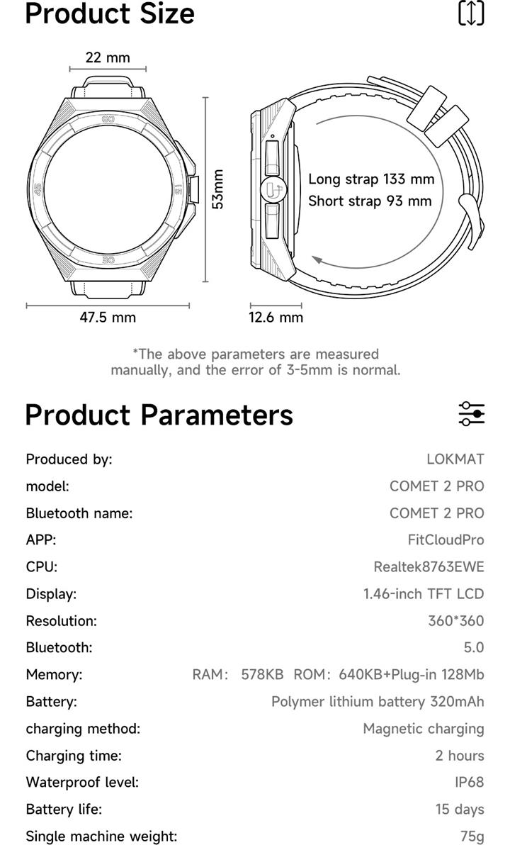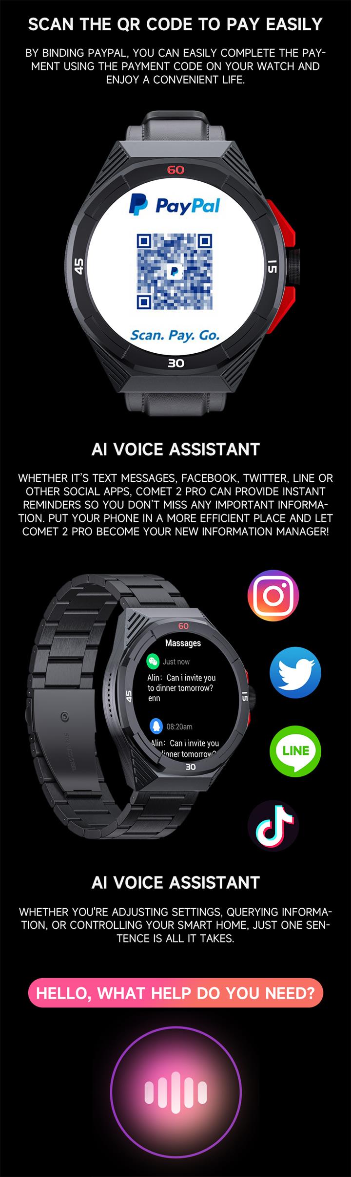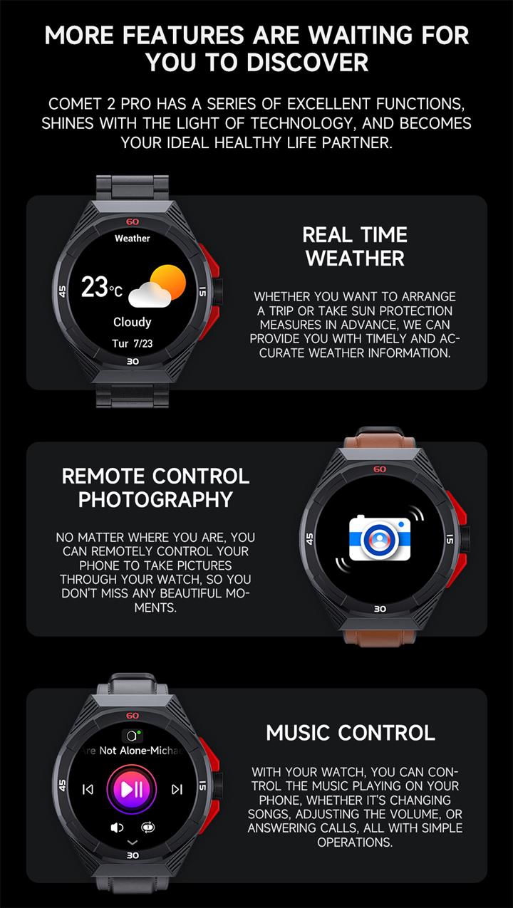 智能1.57英寸量血氧血壓心率通話手表Wat2023