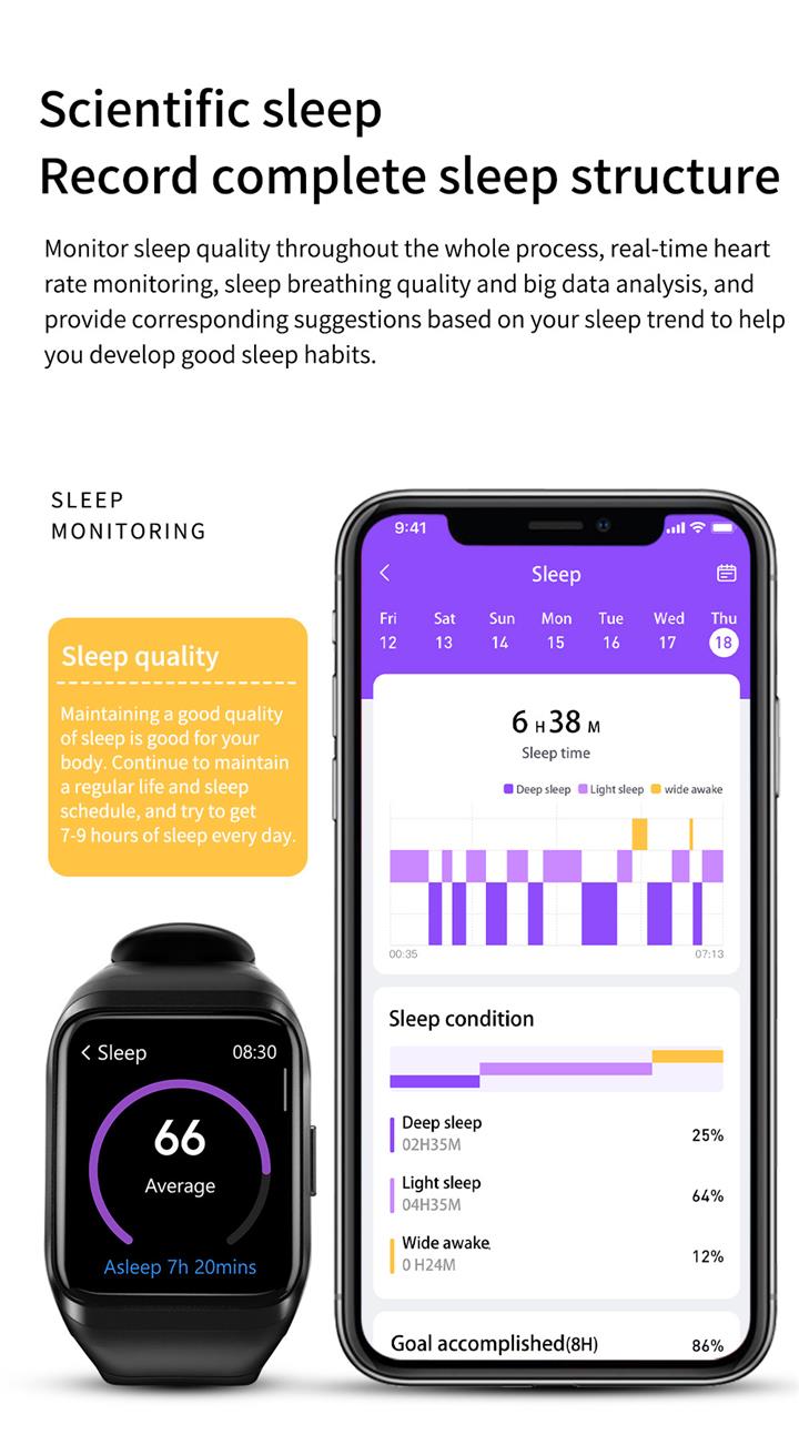 智能1.57英寸量血氧血壓心率通話手表Wat2023