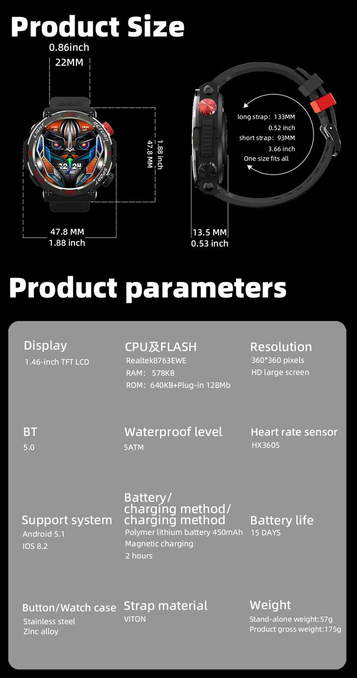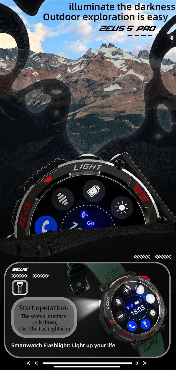 戶外智能手電筒指南針藍牙智能手表Wat2028