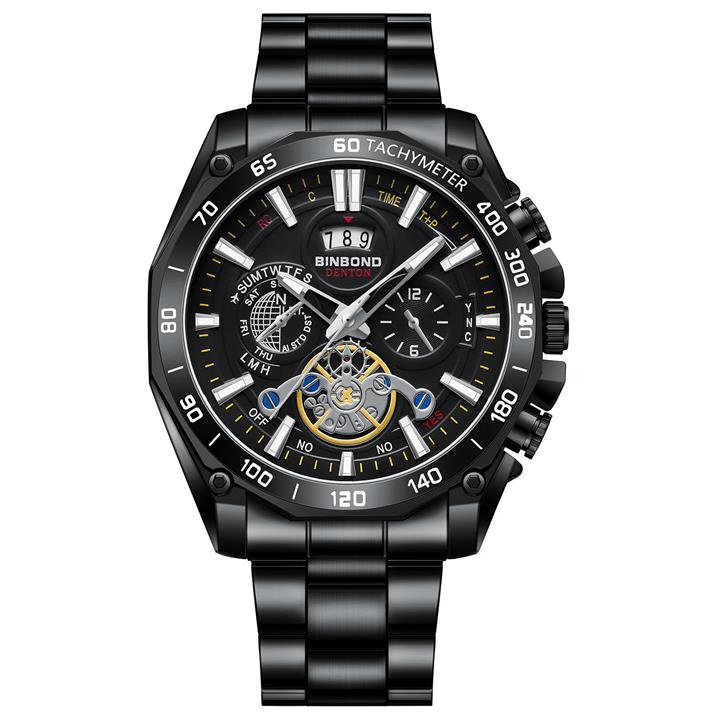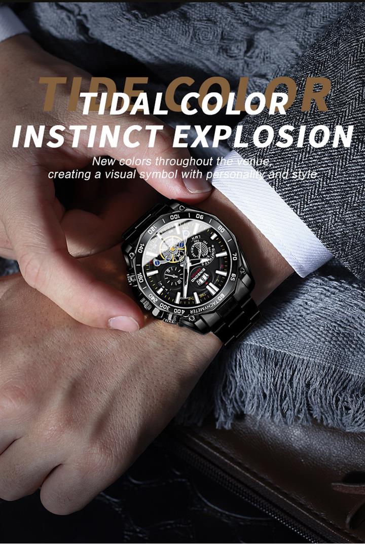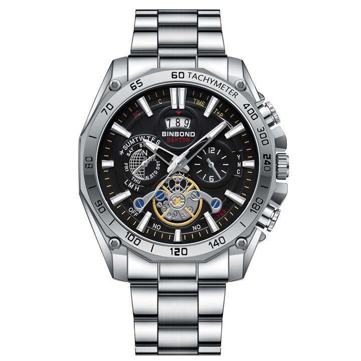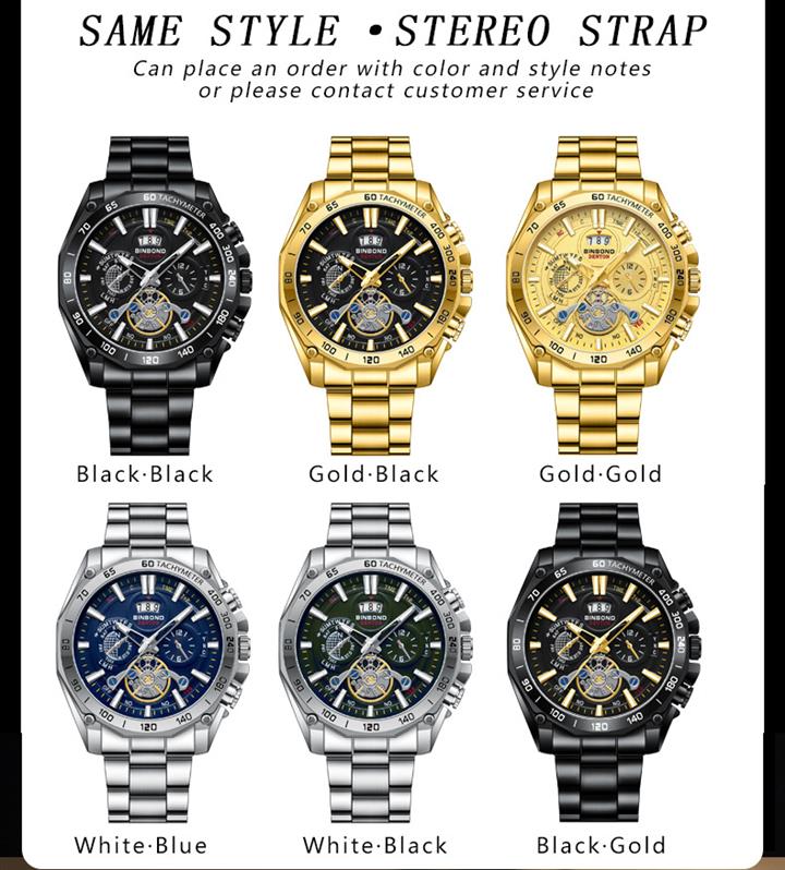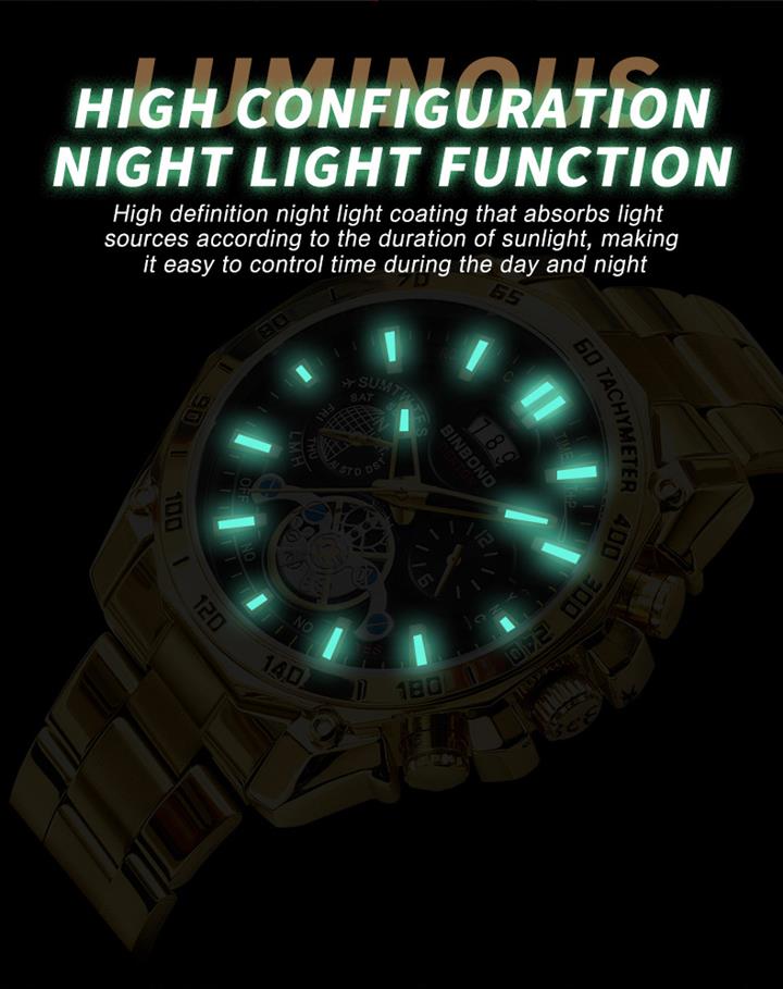 潮流夜光陀飛輪三眼六針手表Wat2066