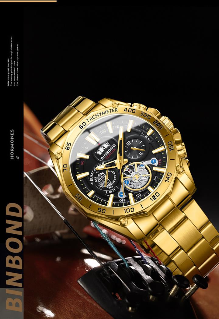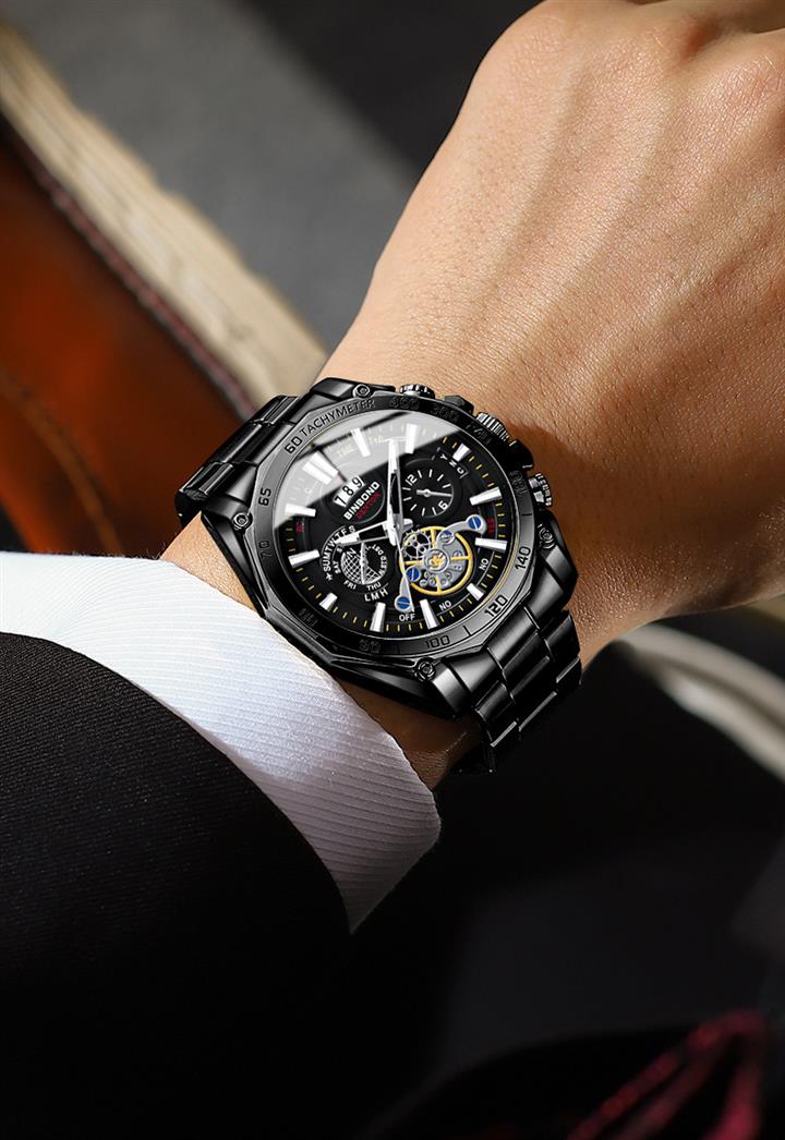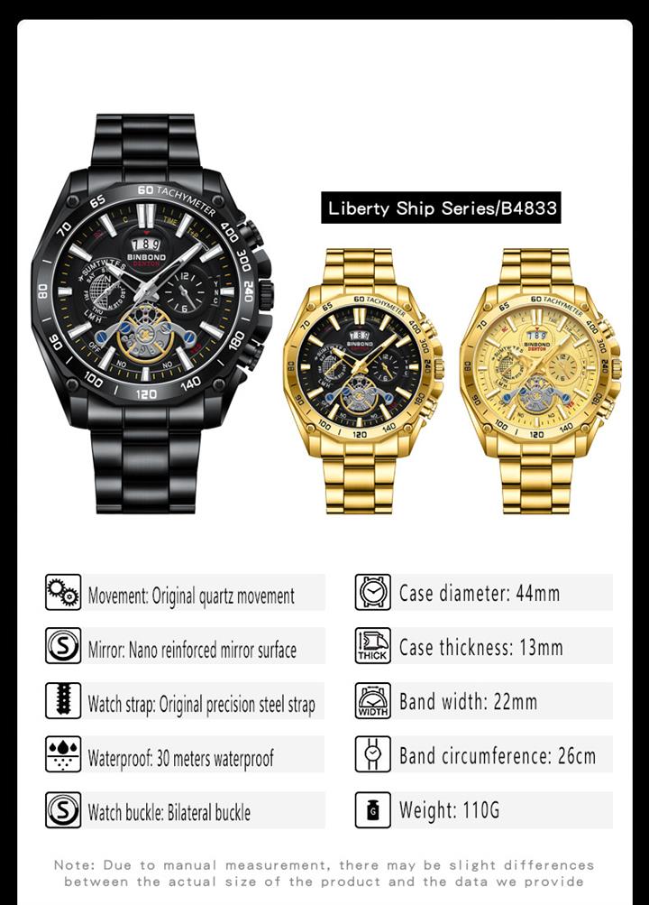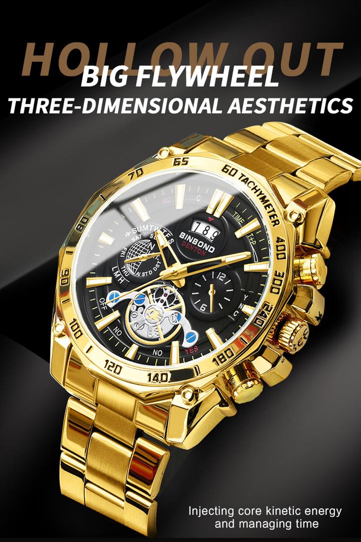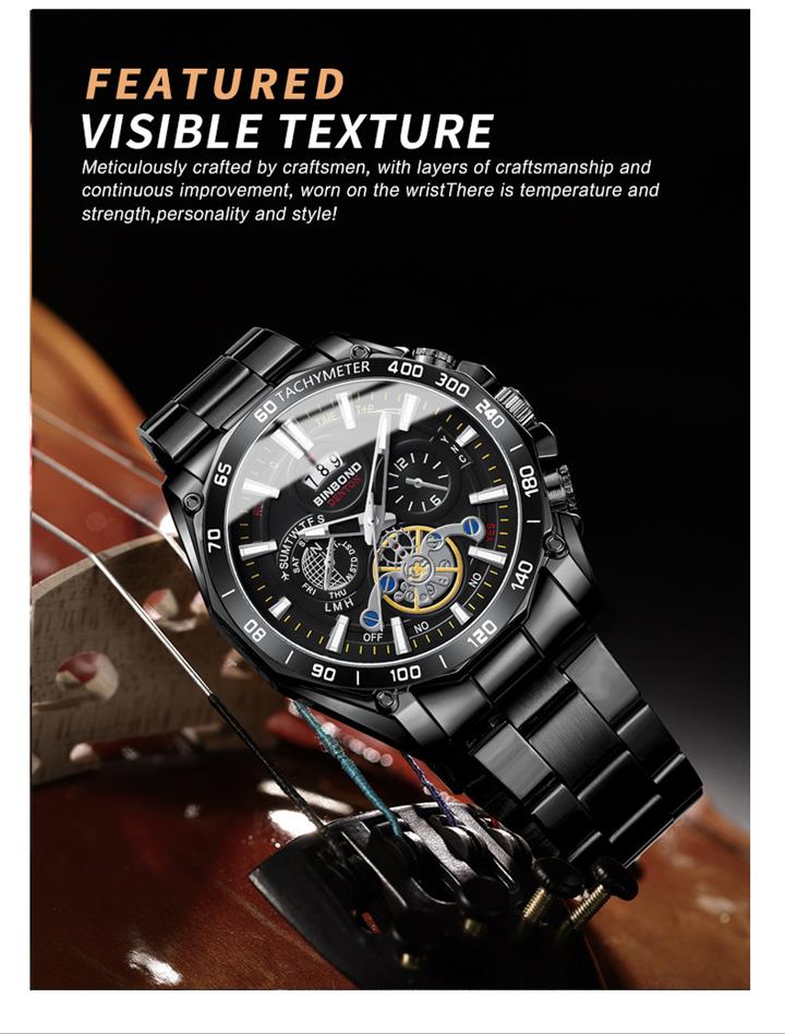 潮流夜光陀飛輪三眼六針手表Wat2066