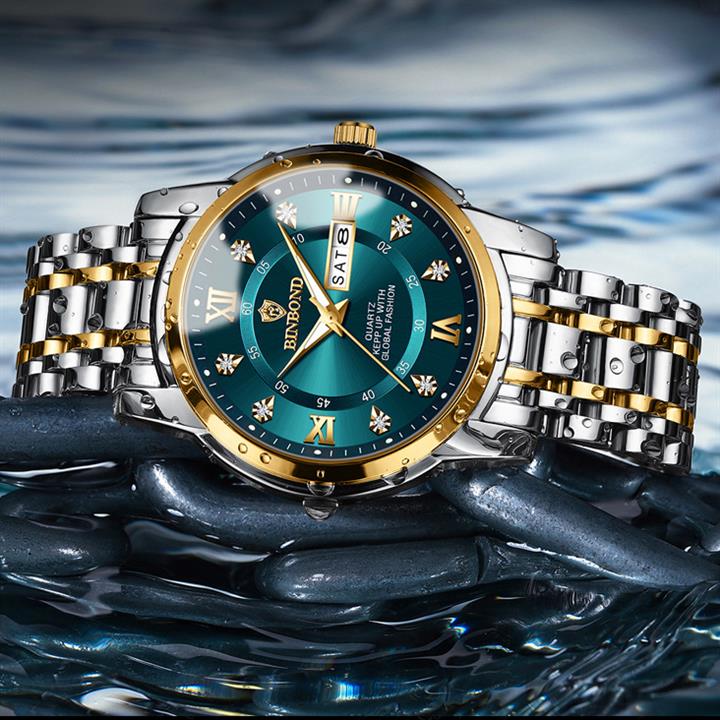 防水夜光雙日歷鑲鉆蝴蝶扣男表Wat2071