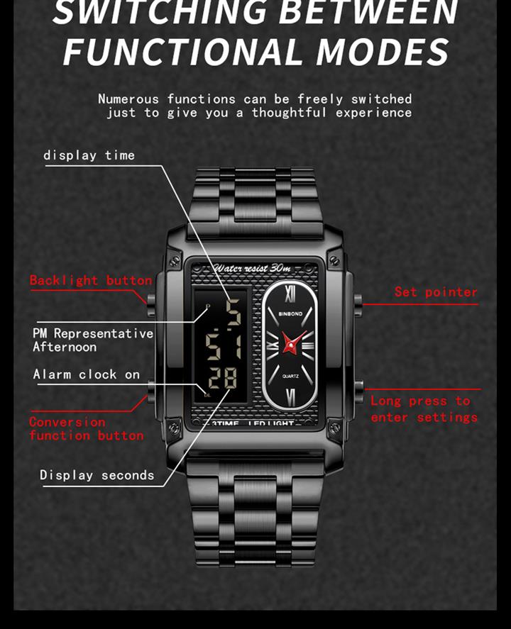 新款雙機芯多功能防水手表Wat2086