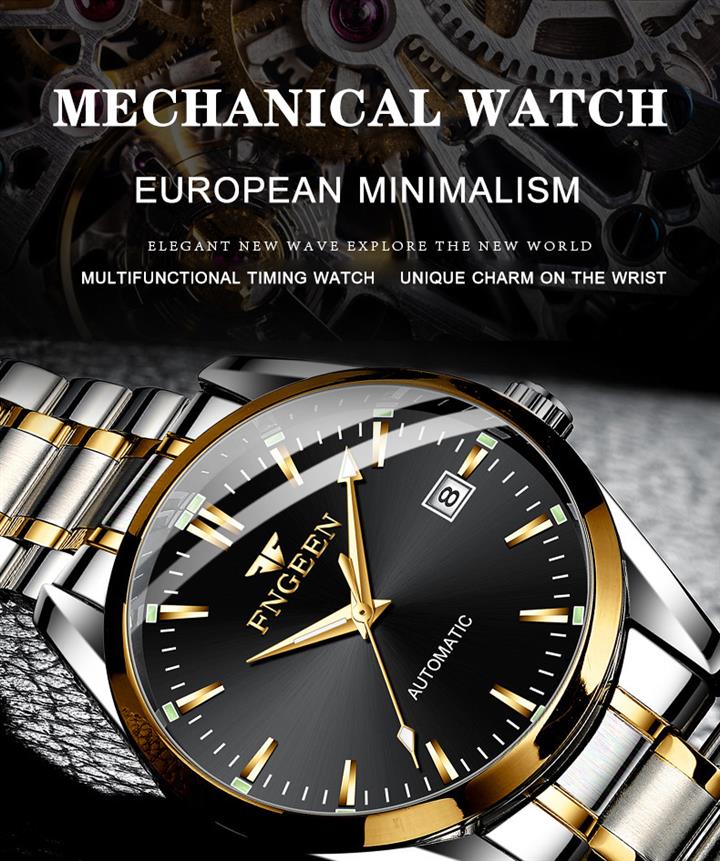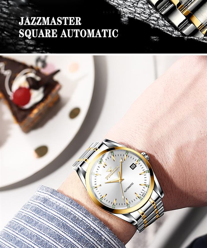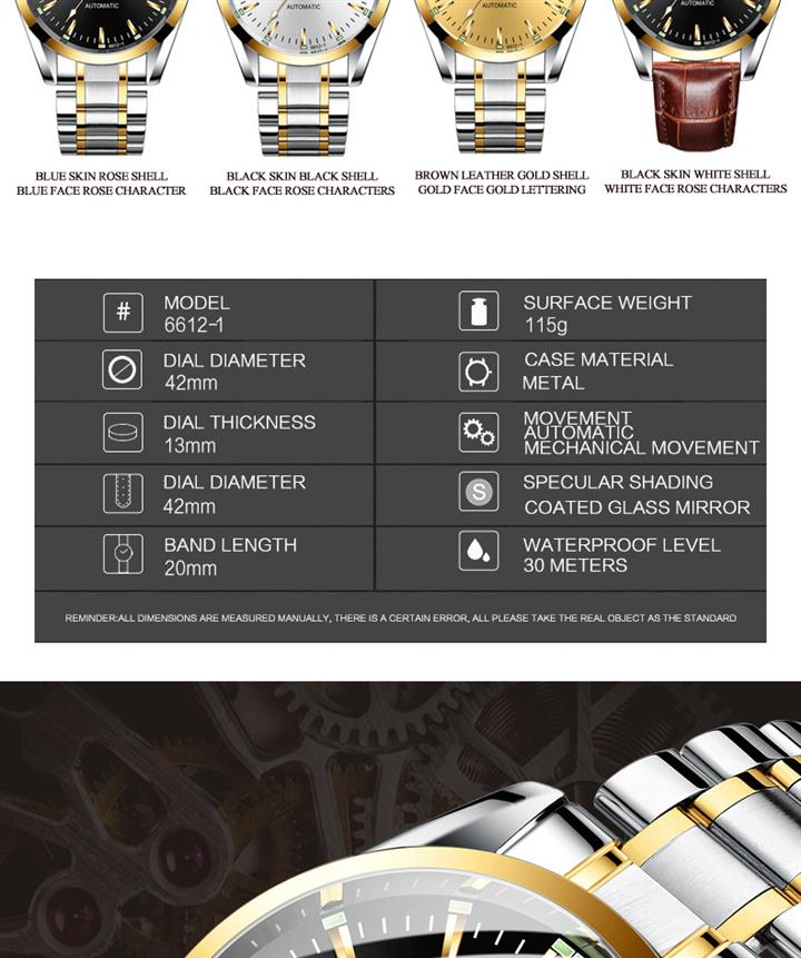 方形男士全自動機械鏤空防水腕錶 wat1844