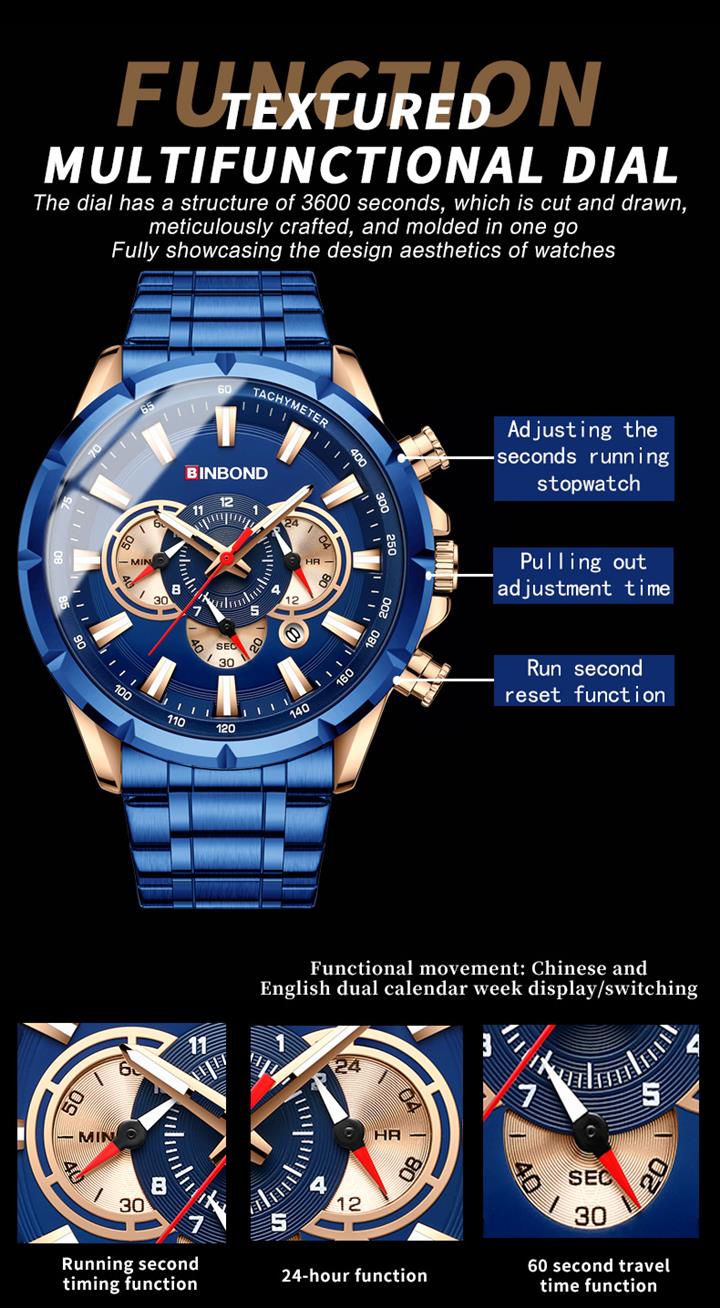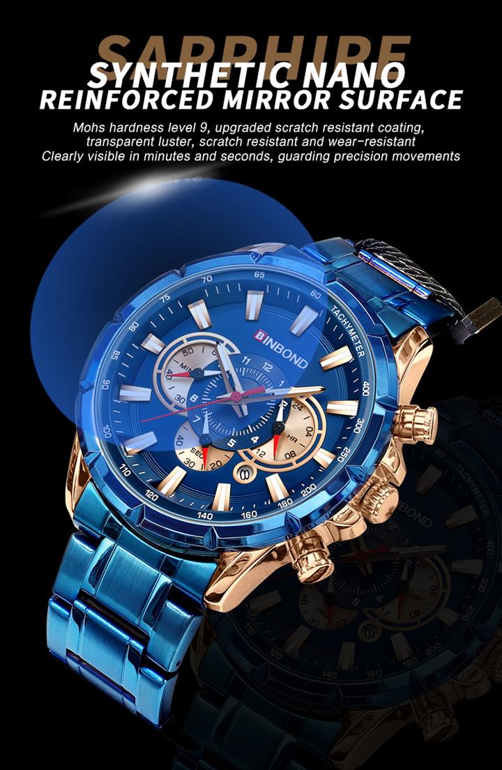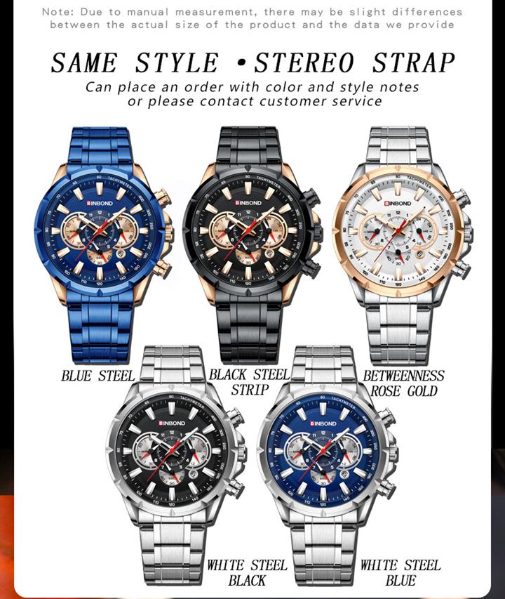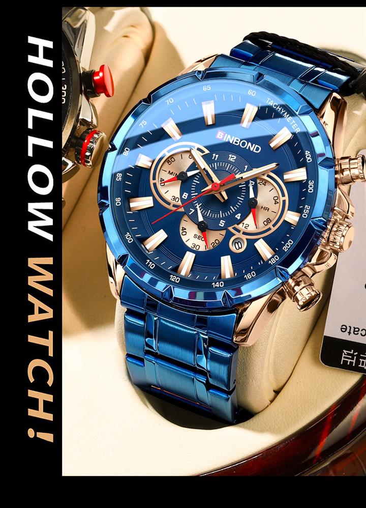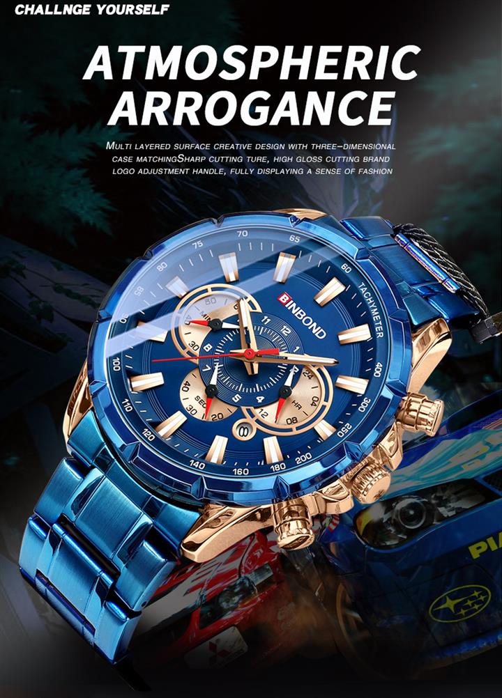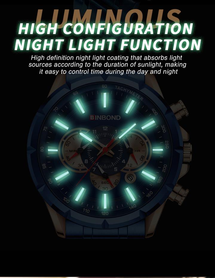 鑲鉆鋼帶男士手表夜光防水Wat2192