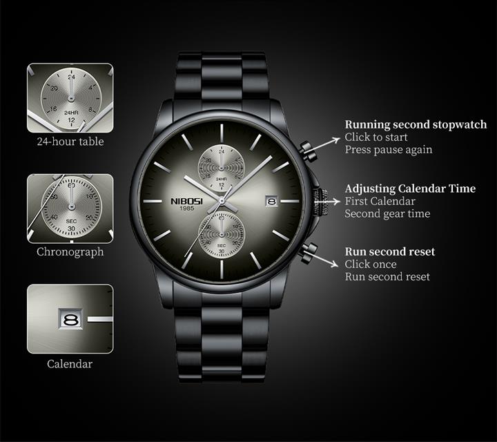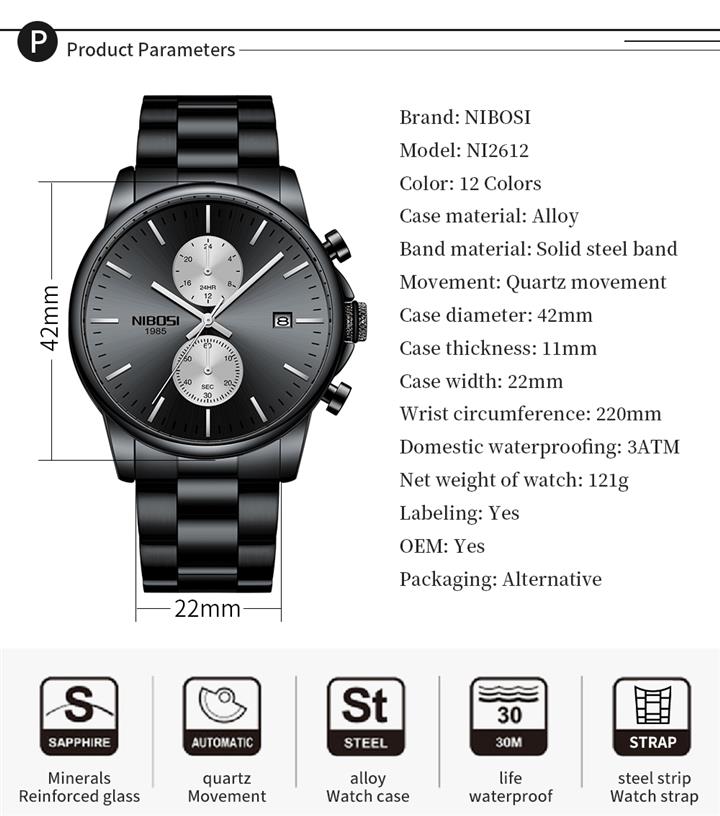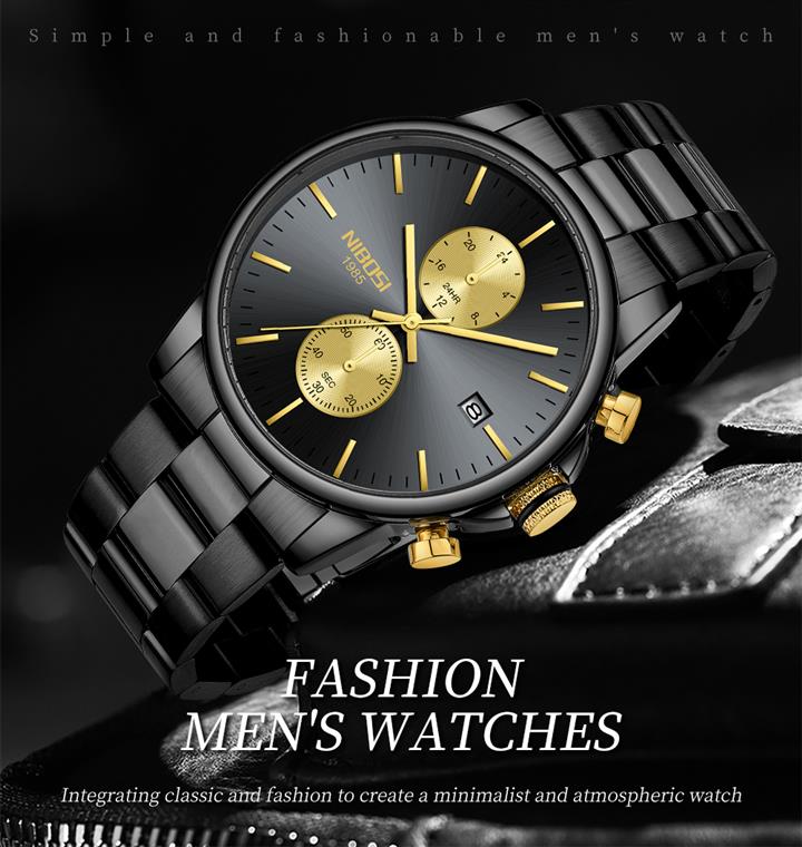 鑲鉆鋼帶男士手表夜光防水Wat2192