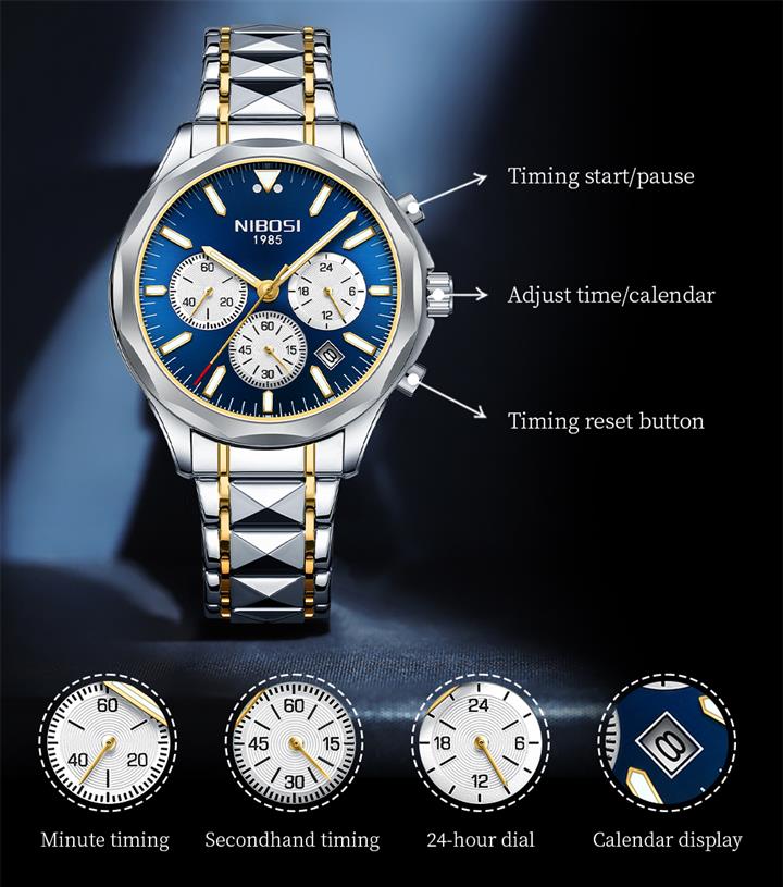 商務簡約石英表潮流六針防水錶米蘭尼斯鋼錶帶Wat45