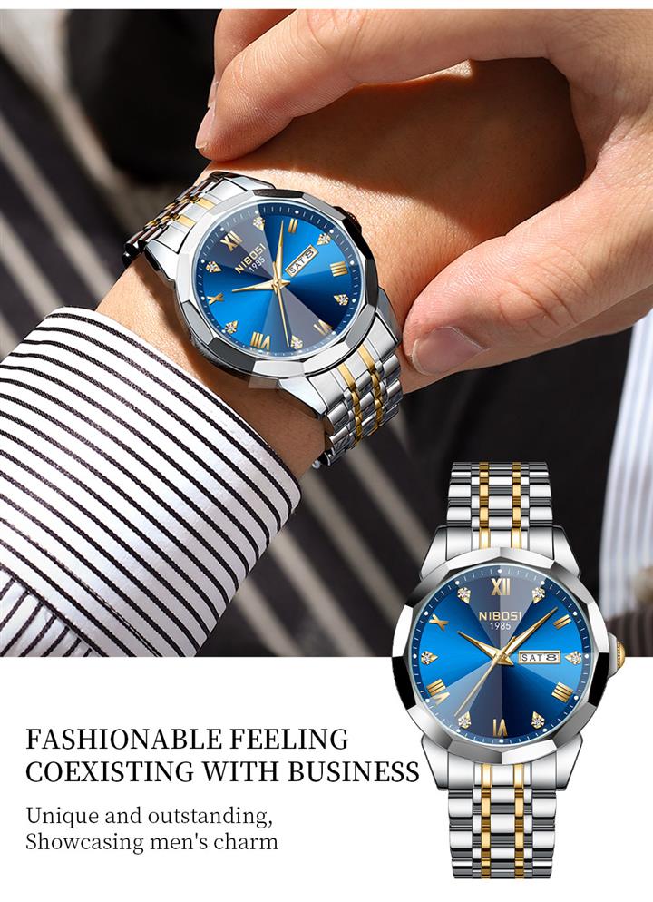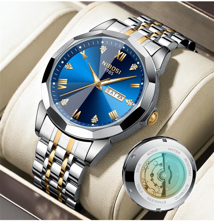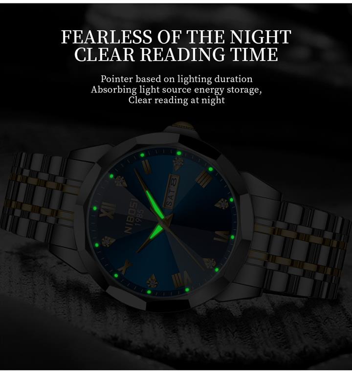 鑲鉆鋼帶男士手表夜光防水Wat2192